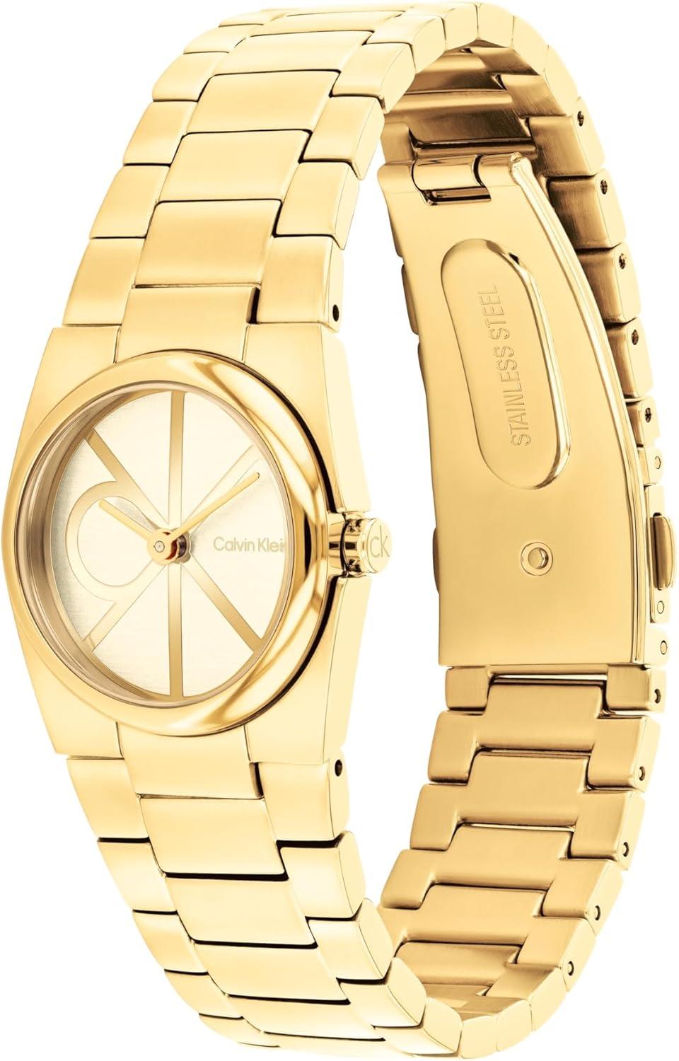 Calvin Klein Women’s CK Unite Stainless Steel Watch, 26mm Case with Link Bracelet – Sleek Curved Case, Modern Everyday Style - Gift for Her(Gold Plated - Light Gold)