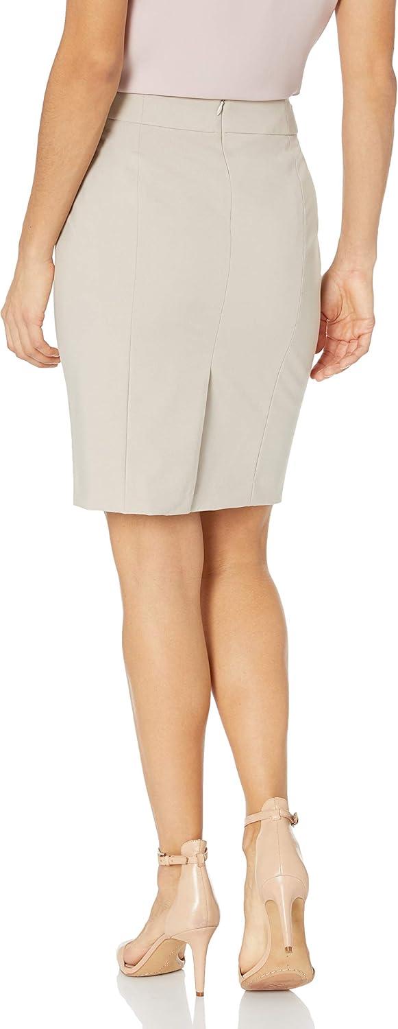 Calvin Klein Women's Classic Fit Straight Lux Suit Skirt (Regular and Plus Size)(Khaki)