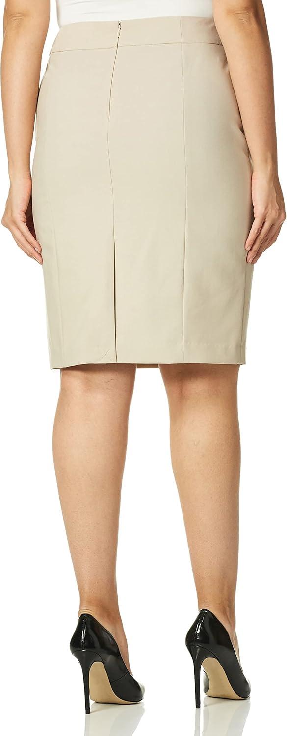 Calvin Klein Women’s Classic Fit Straight Lux Suit Skirt (Regular and Plus Size)(Khaki)