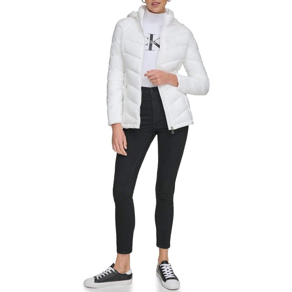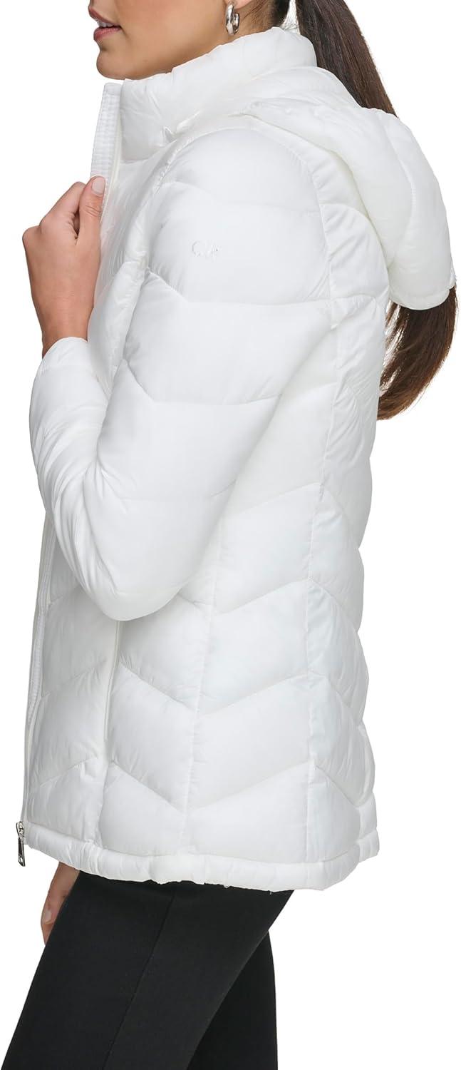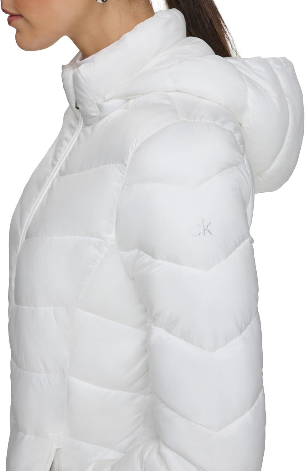 Calvin Klein Women’s Classic Hooded Zip Front Puffer Coat(Light-weight Chevron Cloud)