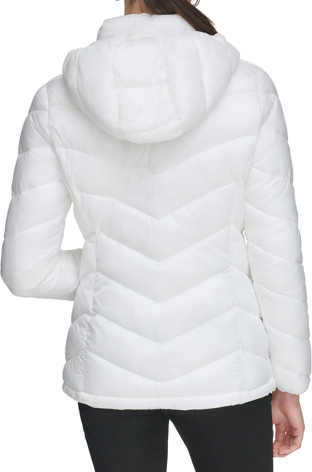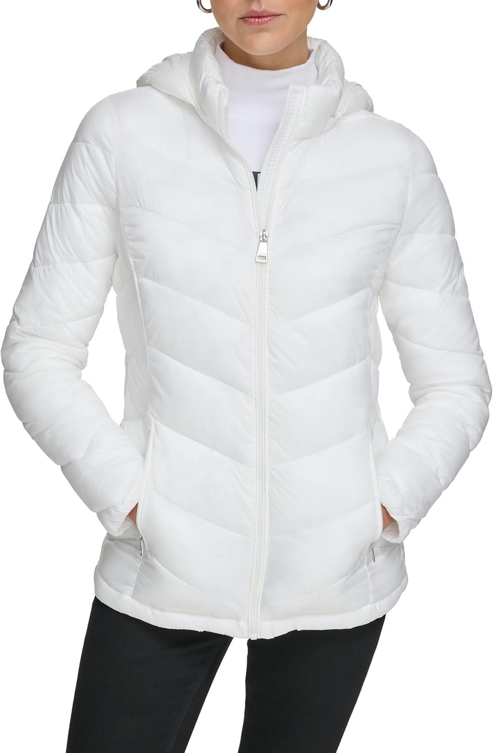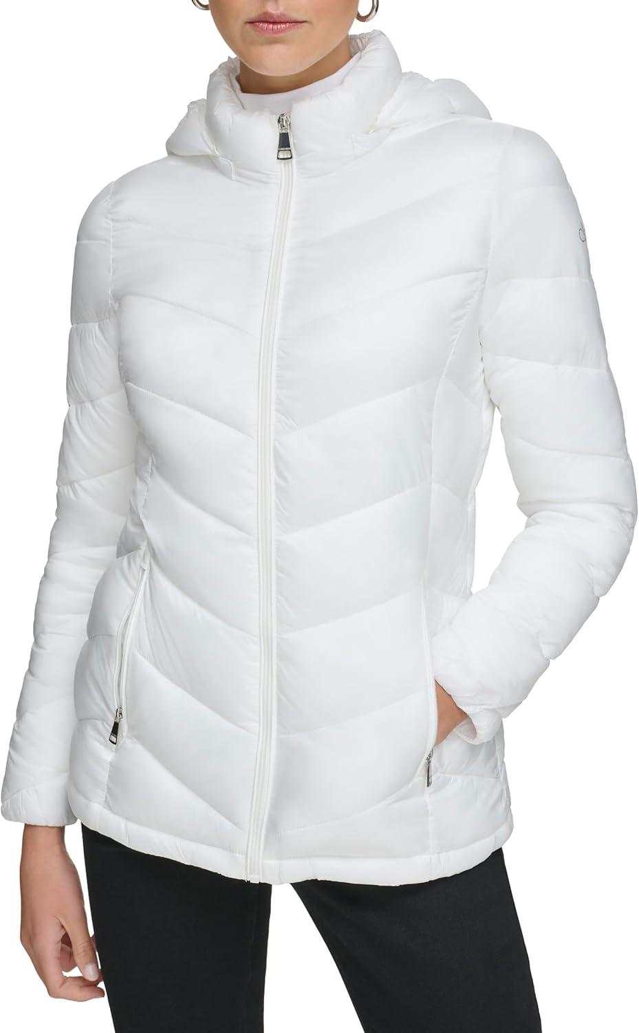 Calvin Klein Women’s Classic Hooded Zip Front Puffer Coat(Light-weight Chevron Cloud)