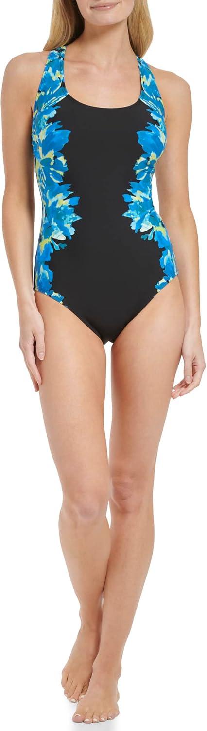 Calvin Klein Women’s Classic Over The Shoulder One Piece Swimsuit(Lapis Floral Multi)