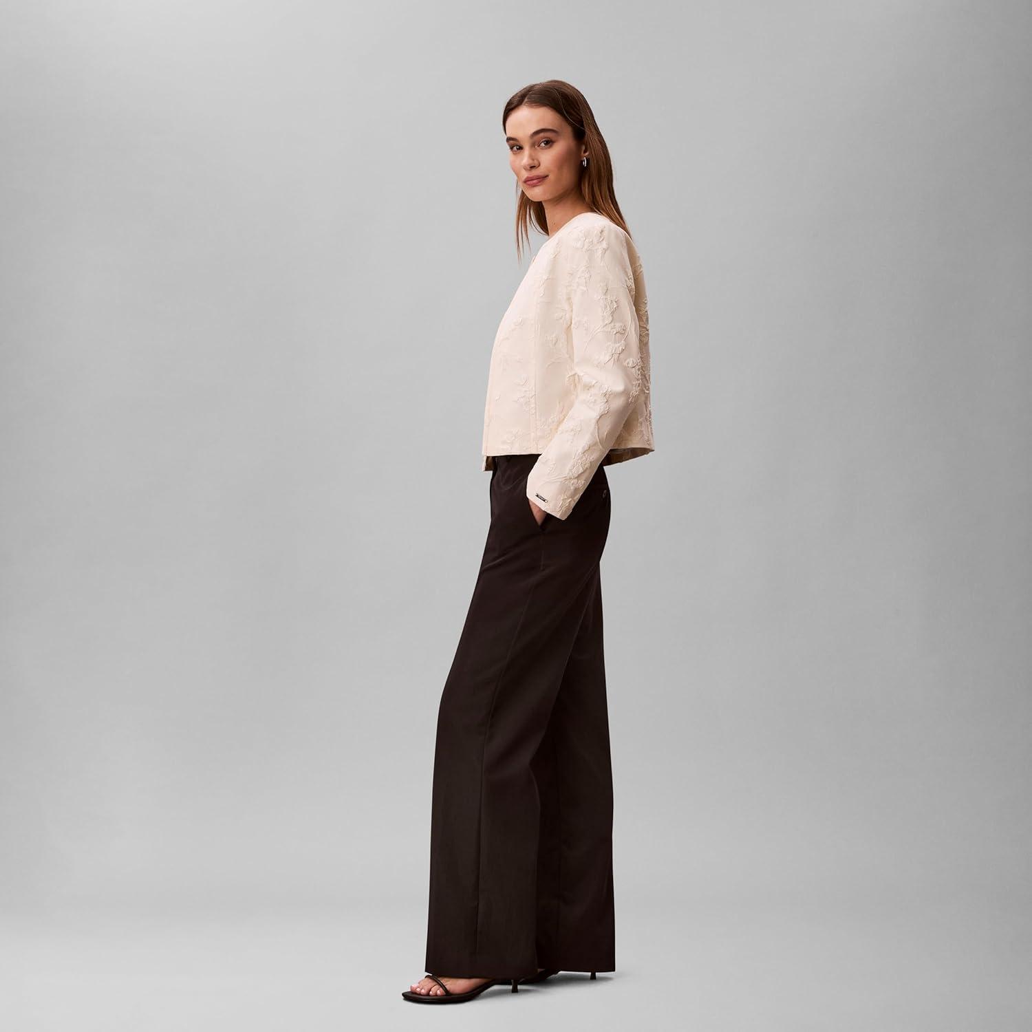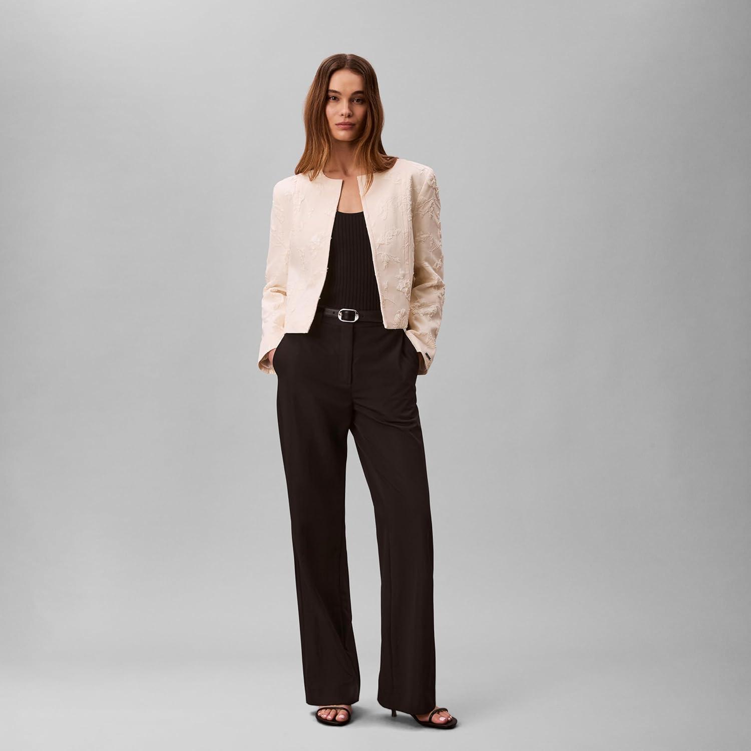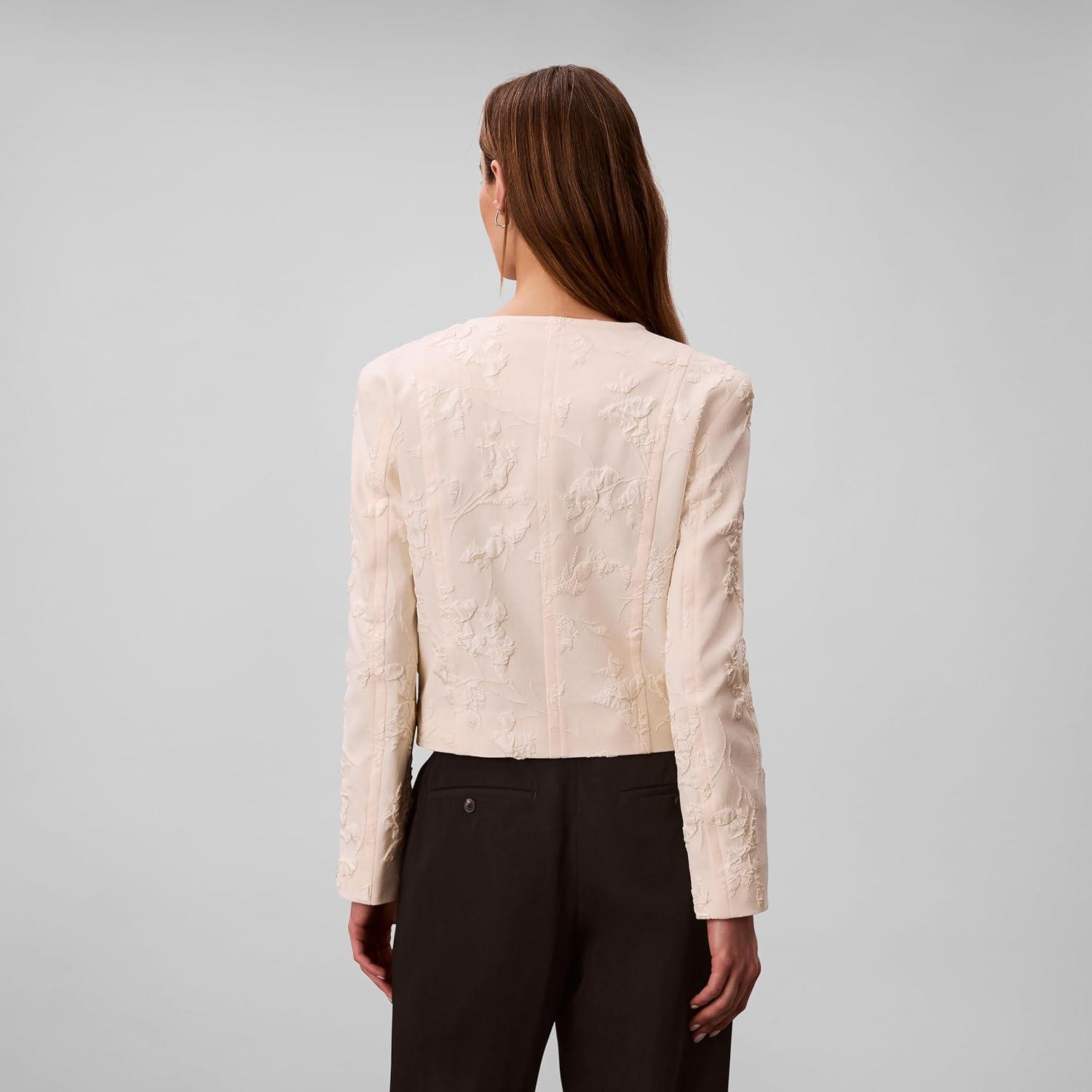 Calvin Klein Women’s Cloque Jacket(Black Floral W Cloque Jacquard)