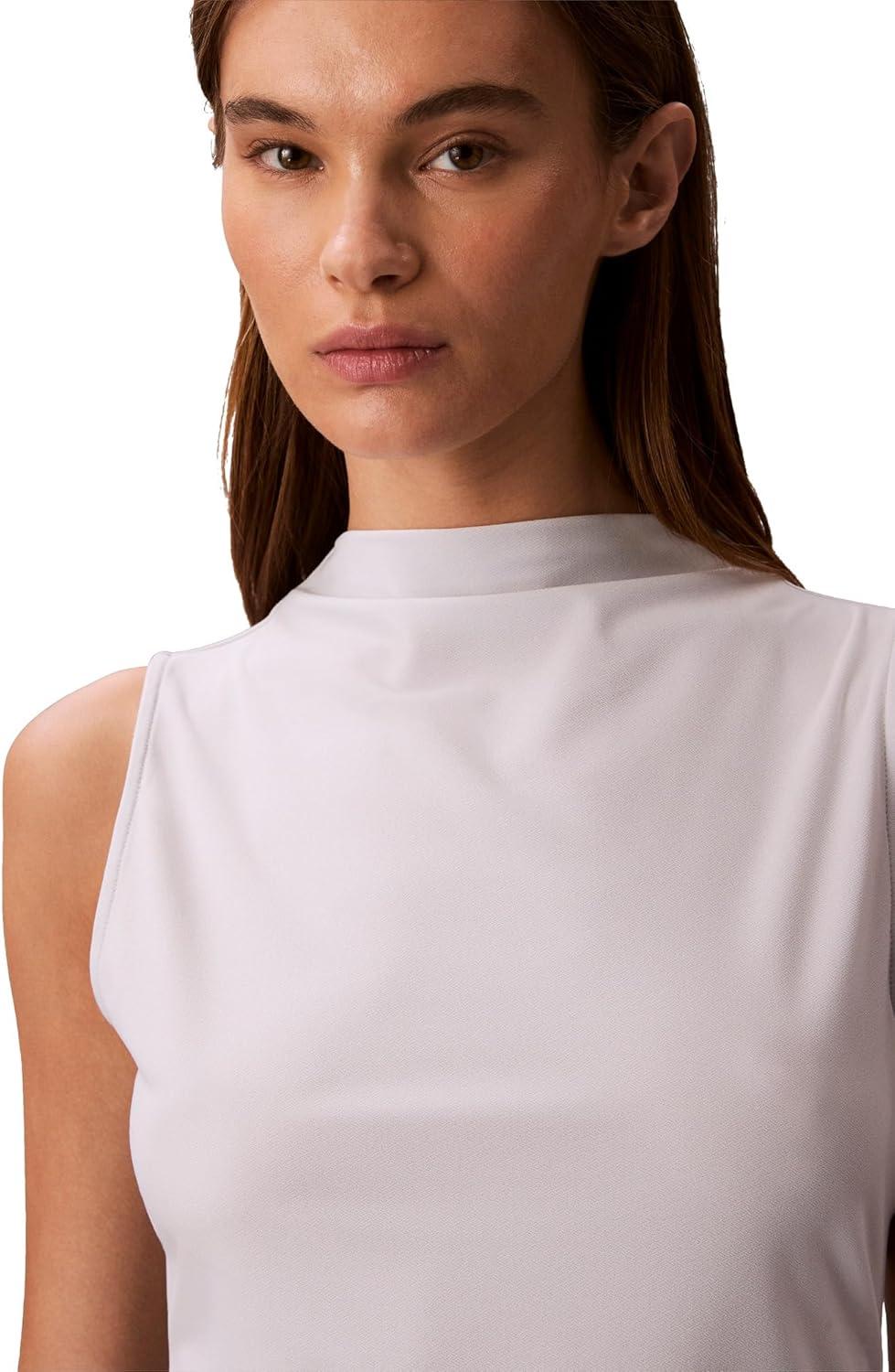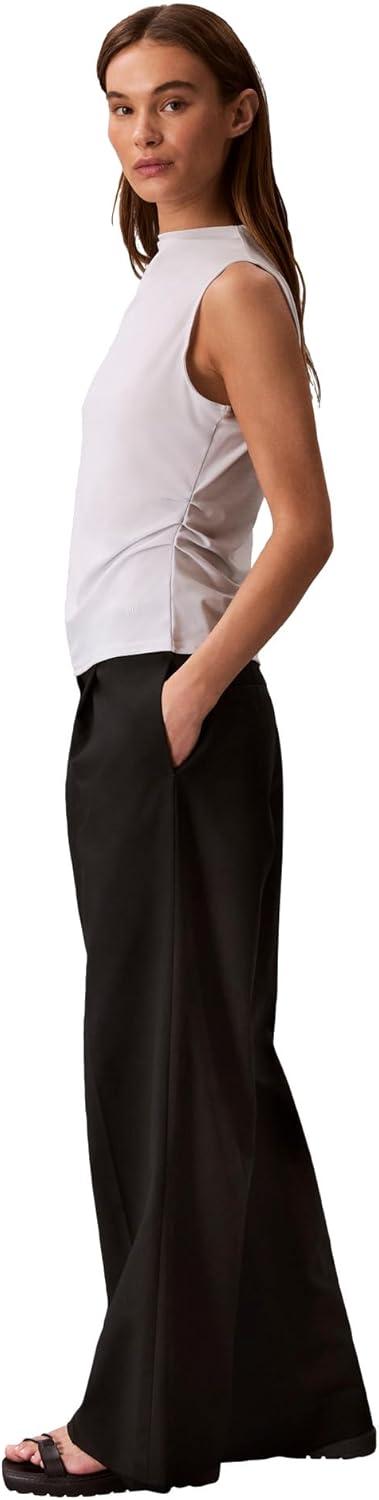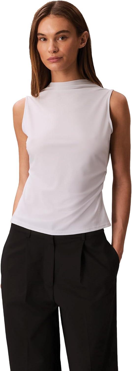 Svelte in a slim fit, this Calvin Klein top is crafted from a crepe stretch blend for a soft, flexible feel. Designed with shirring at the sides and gathered fabric for an elegant drape.