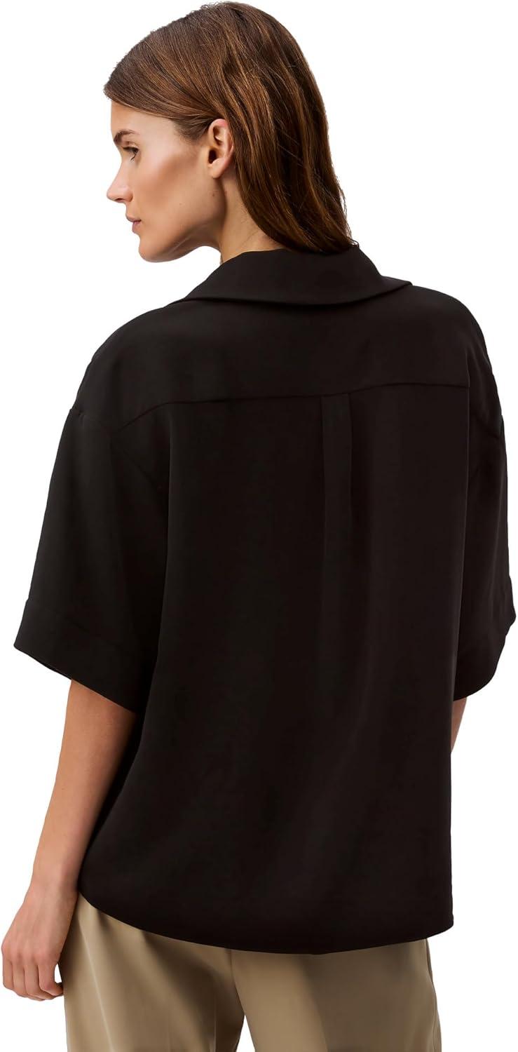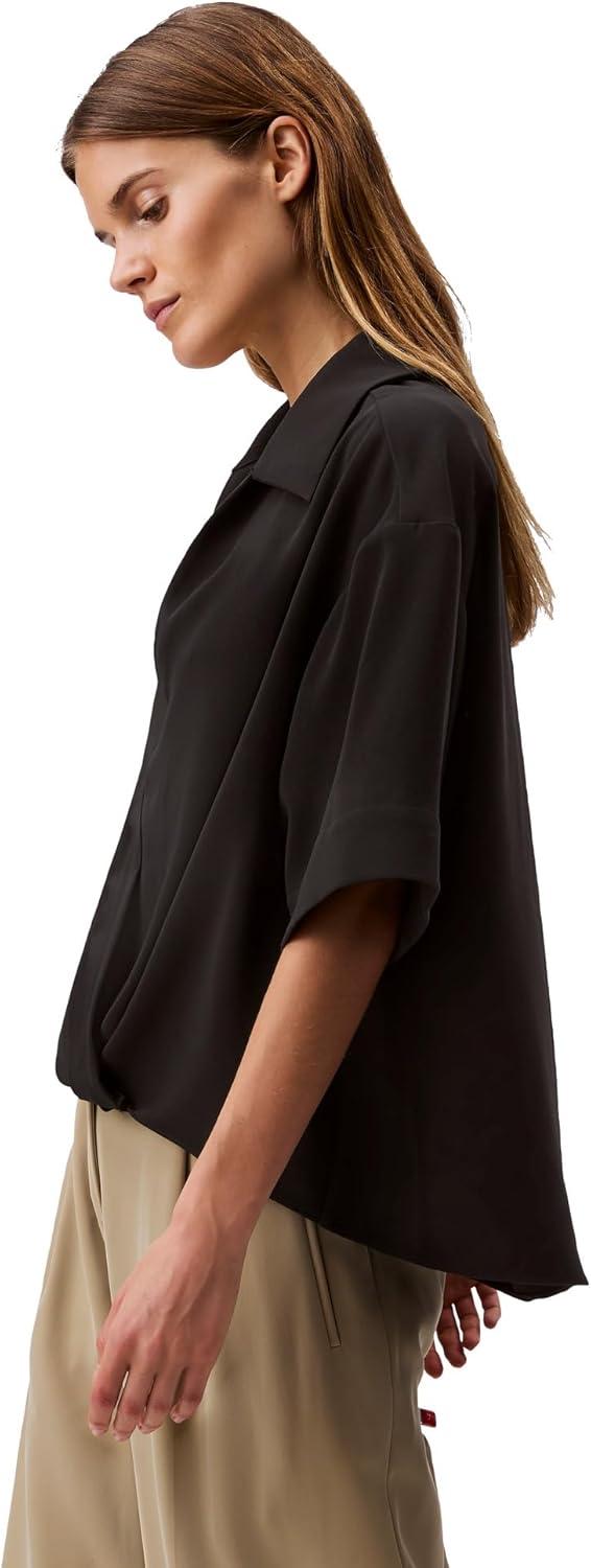 Calvin Klein Womens Crepe Printed Wrap Top(Black)