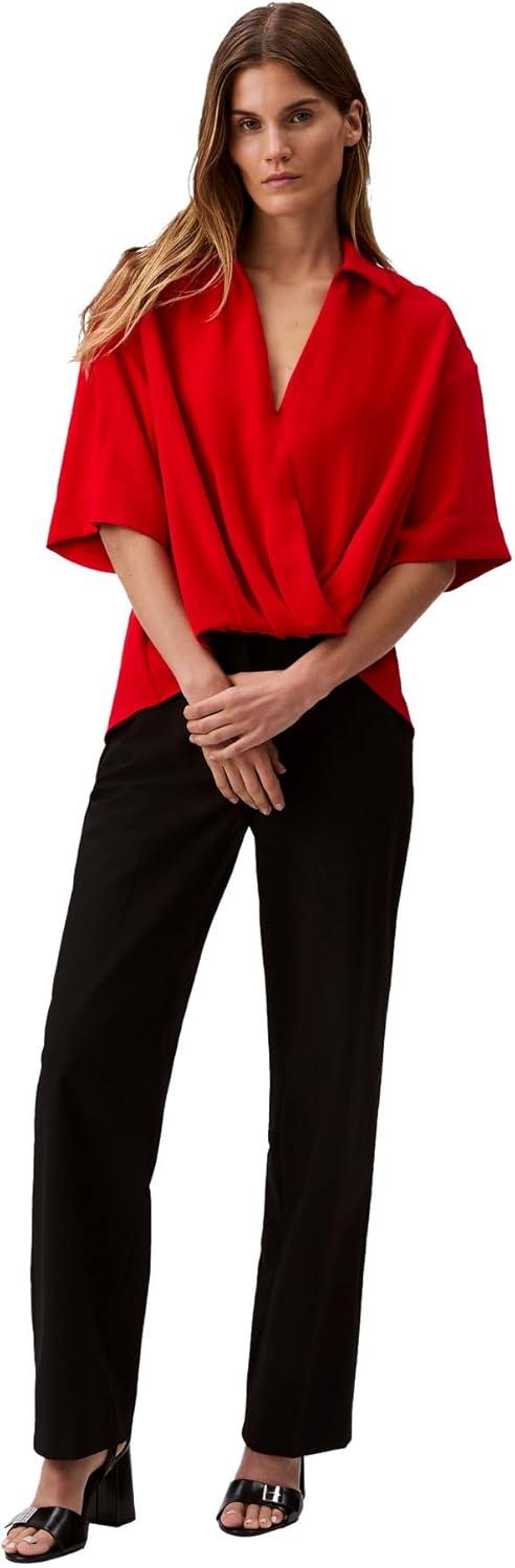 Calvin Klein Womens Crepe Printed Wrap Top(Goji Berry)