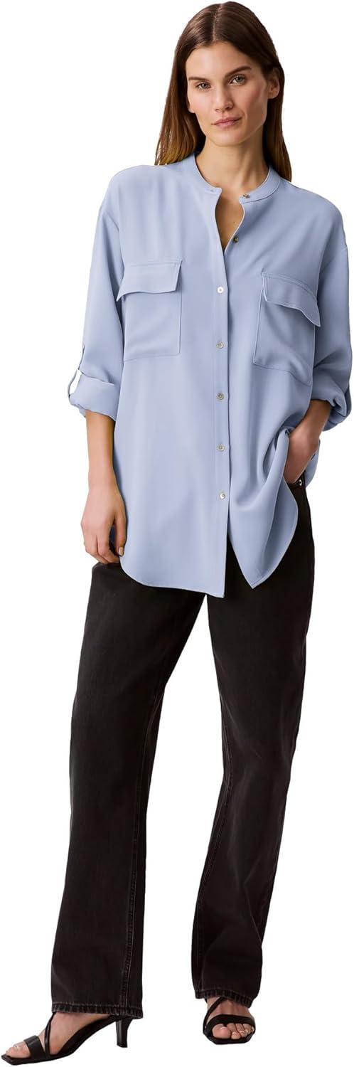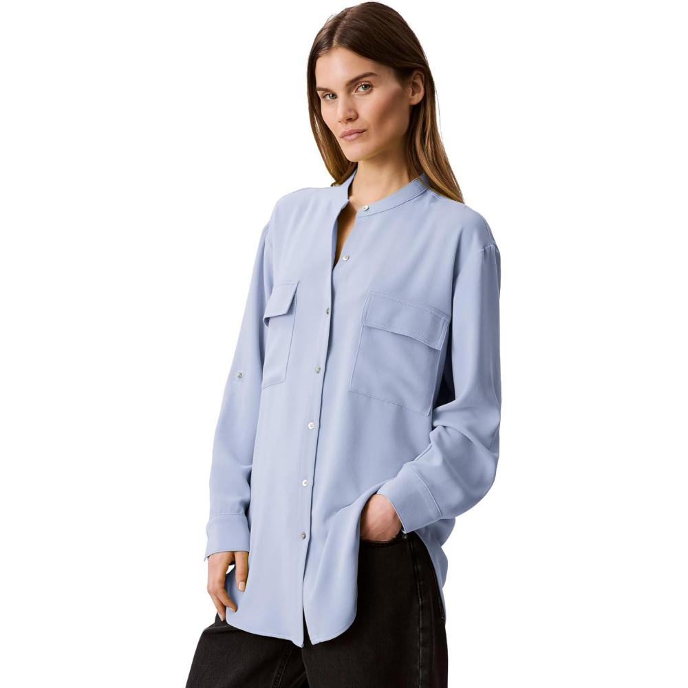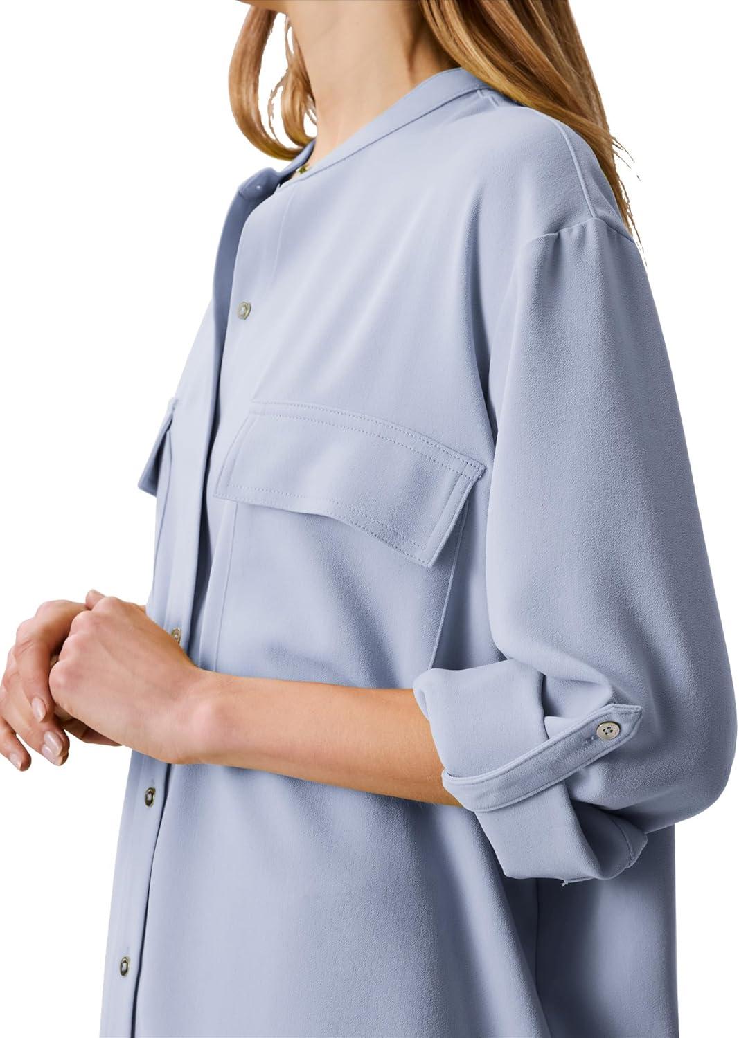 A relaxed button-down shirt in smooth crepe. Styled with a banded collar and long sleeves.