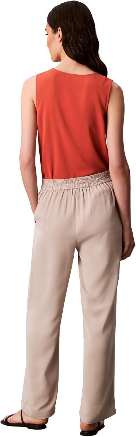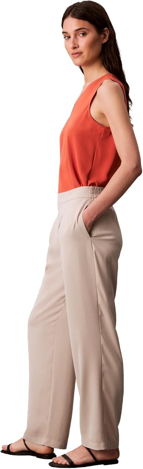 Calvin Klein Women's Crepe Wide Leg Trouser(Island Fossil)