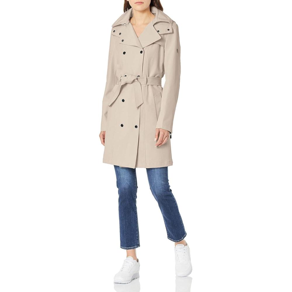 Calvin Klein Double Breasted Trench Coat with belt and detachable hood.