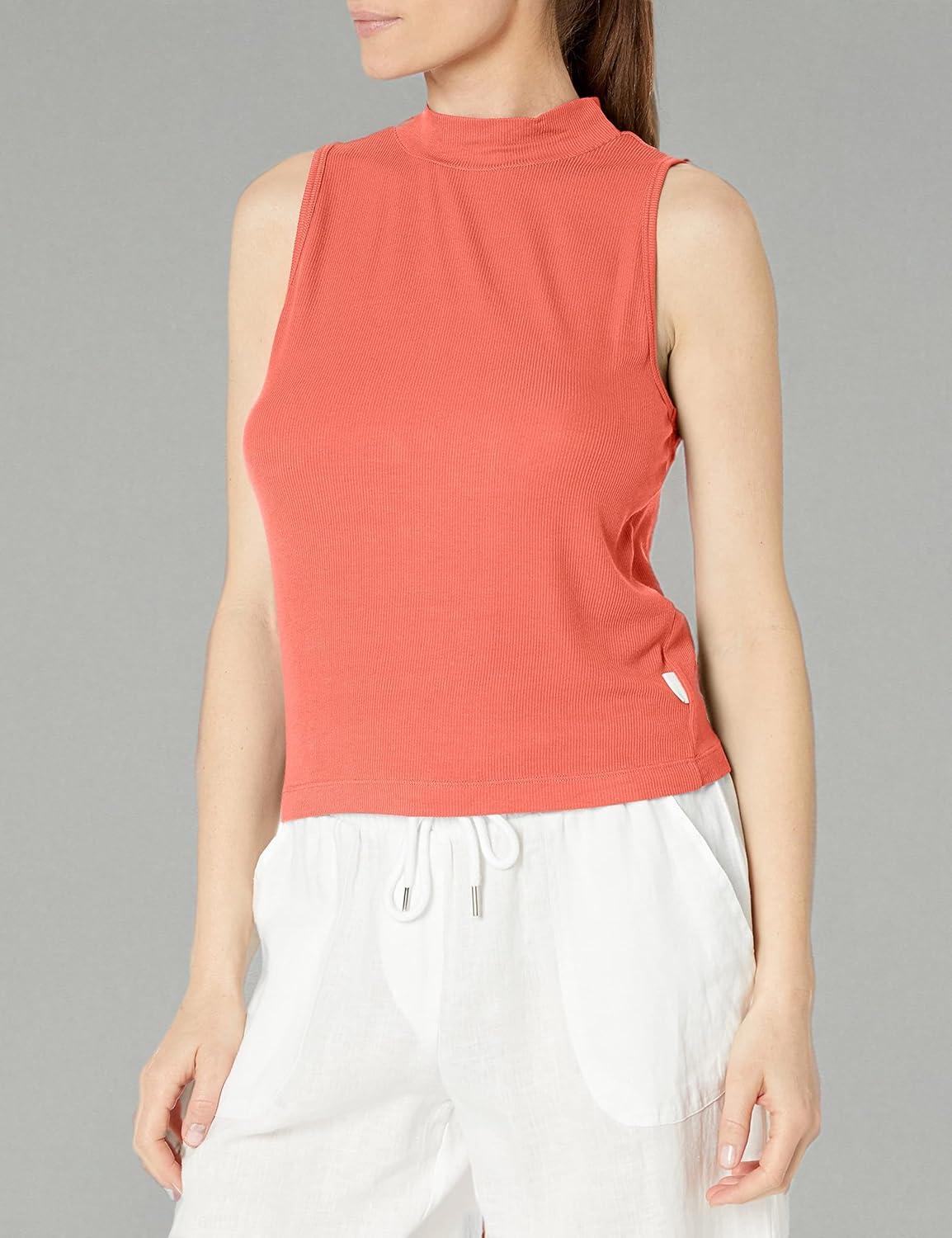This CALVIN KLEIN JEANS womens Jeans Tee is a CASUAL everyday essential Moc Neck SLEEVELESS