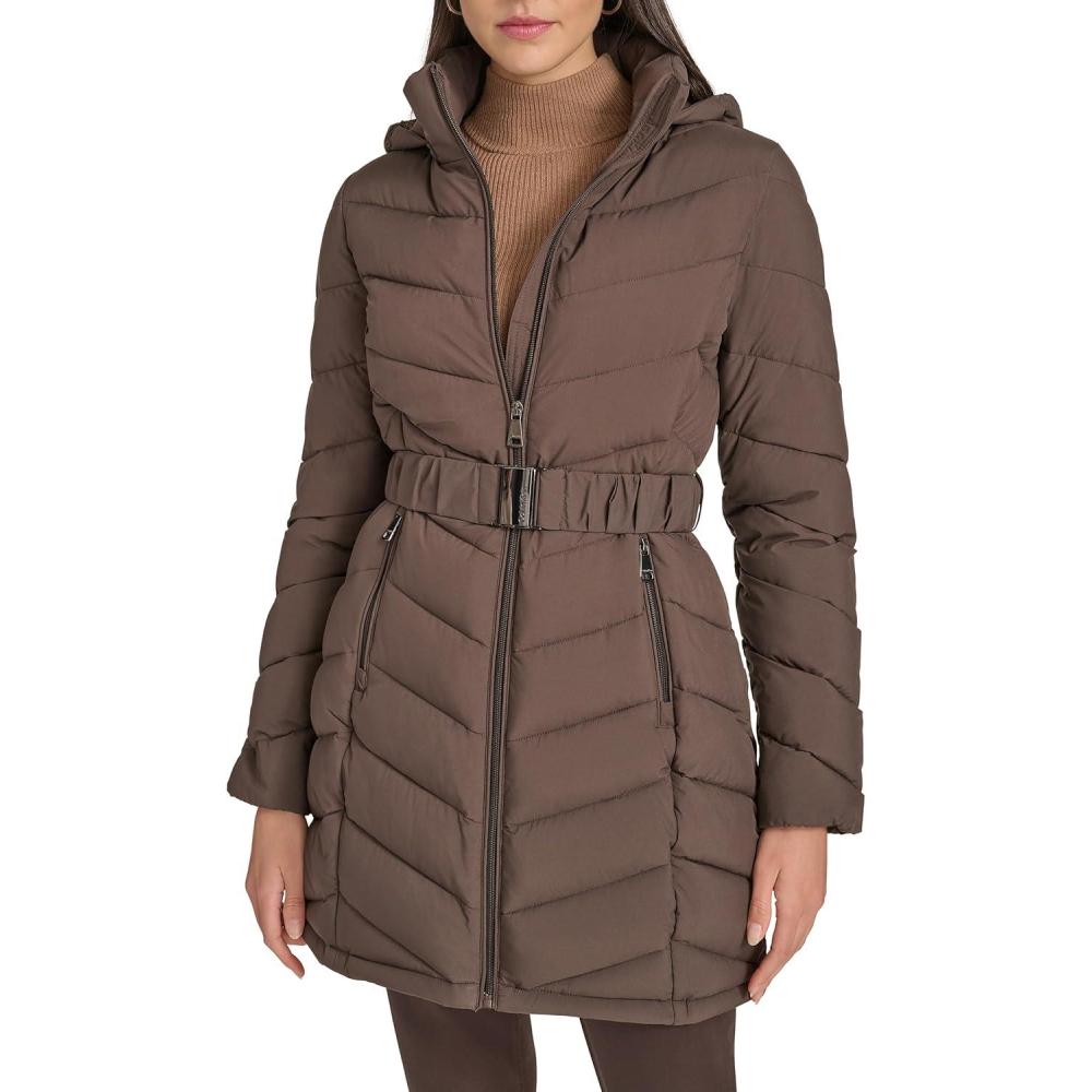This Calvin Klein Women's Outerwear Jacket is a Light-Weight Hooded Puffer Coat.