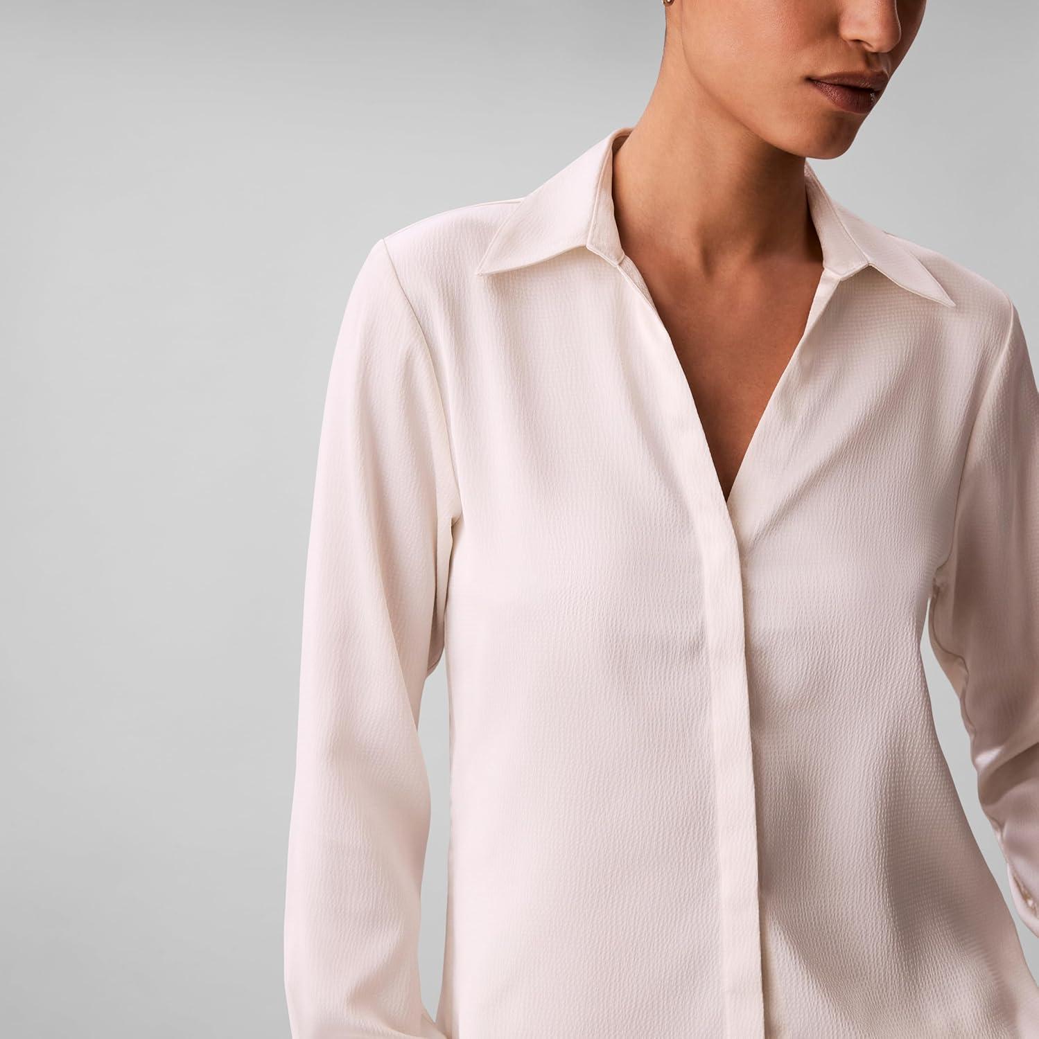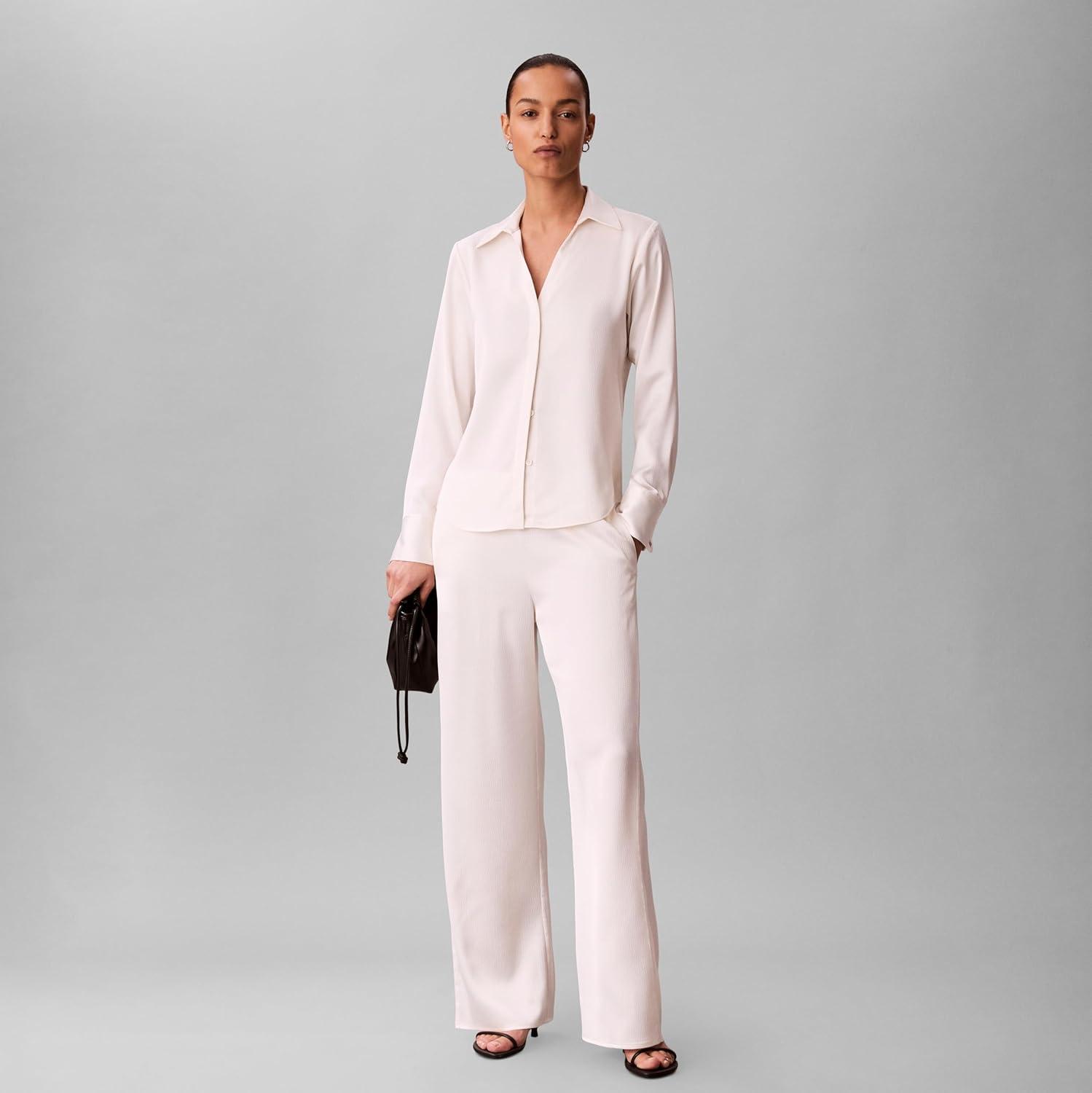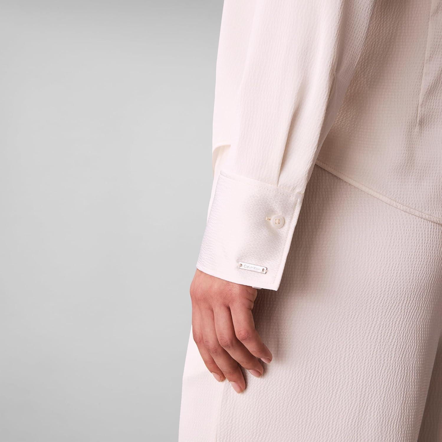 Calvin Klein Women’s Hammered Satin Fitted Shirt(Tofu)