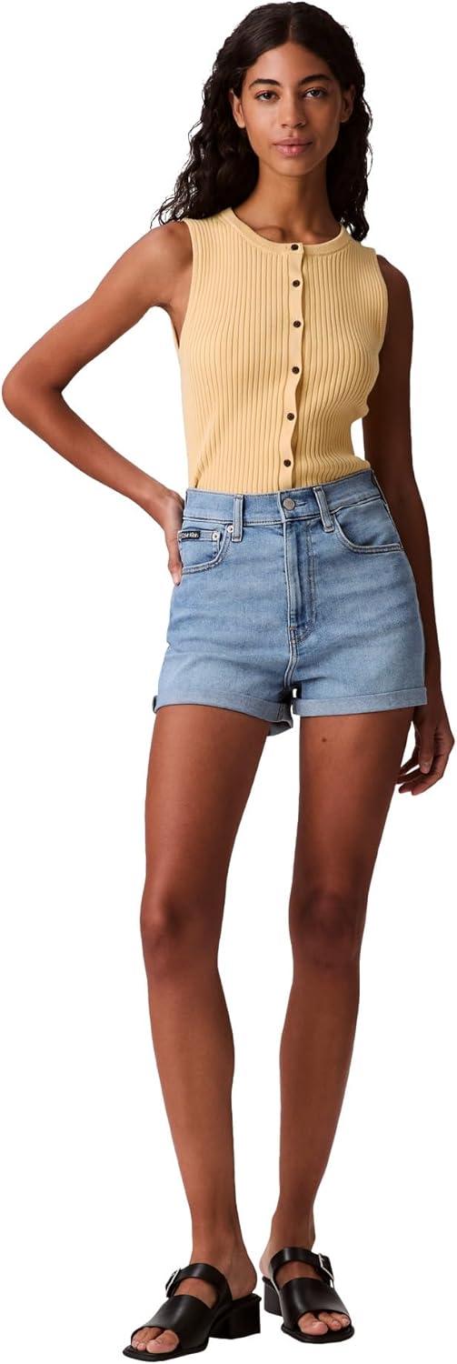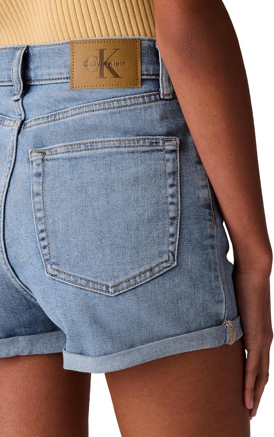 A high rise silhouette, these jean shorts are designed with fitted styling. Crafted from extra soft cotton stretch denim for a flexible fit and feel. Finished with a CK monogram logo patch at the back waist.