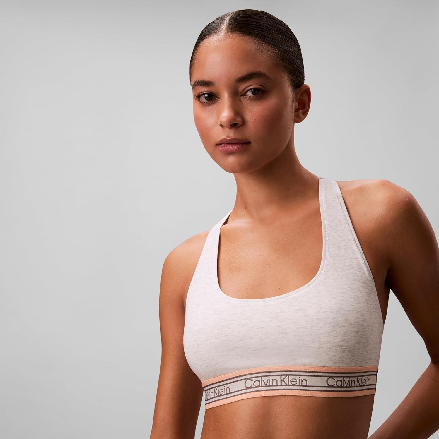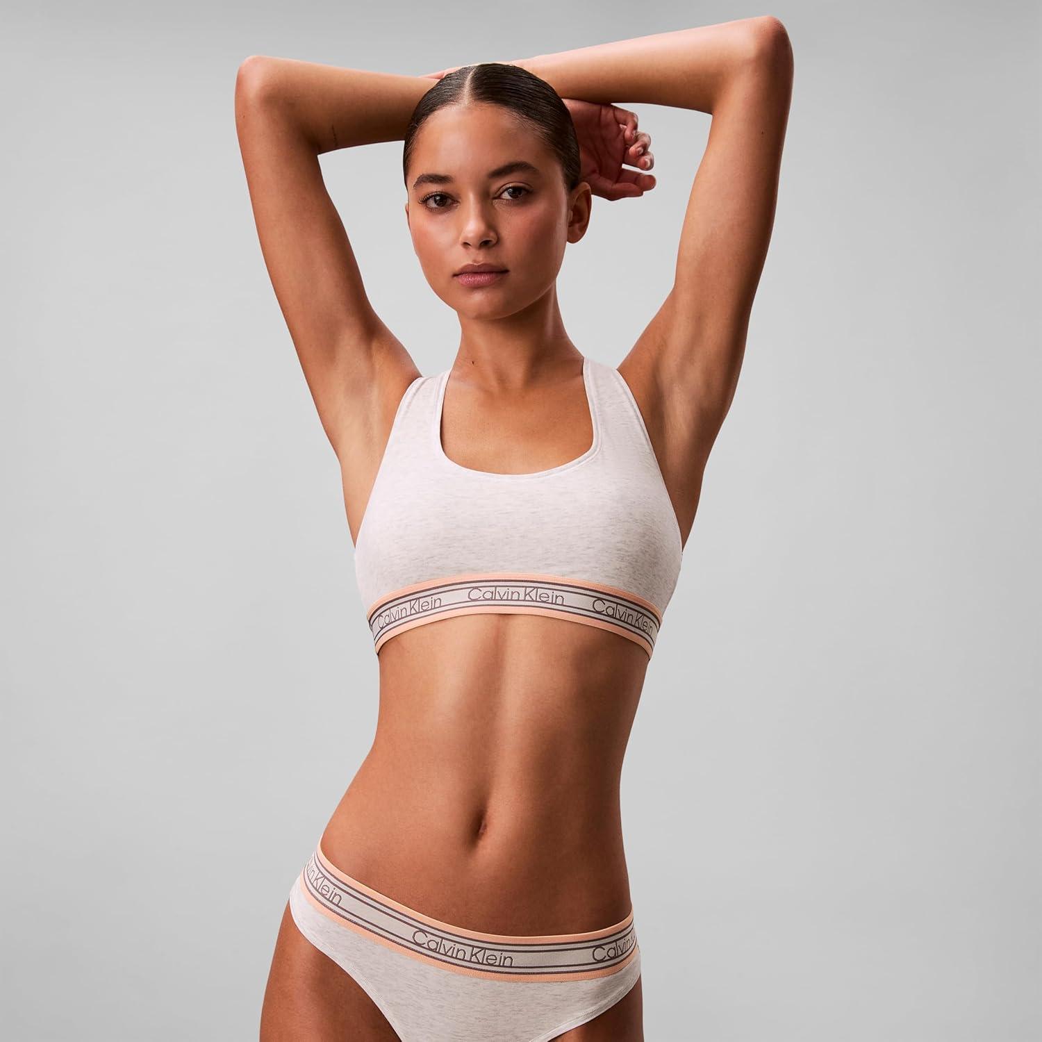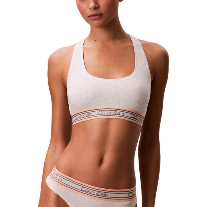 Calvin Klein Women’s Icon Cotton Modal Unlined Bralette(Snow Heather Retro Stripe)