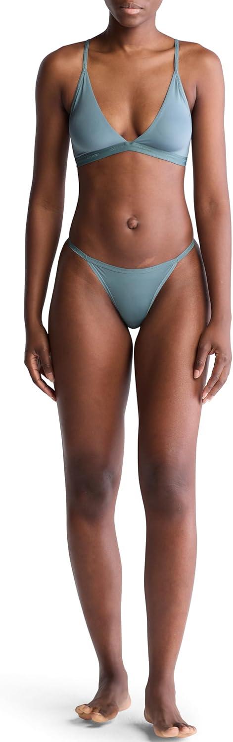 A core Calvin Klein string thong, crafted from silky soft microfiber stretch for a smooth touch with added flexibility. Designed with a slim repeating logo elastic waistband for excellent recovery and a minimal coverage t-back silhouette.