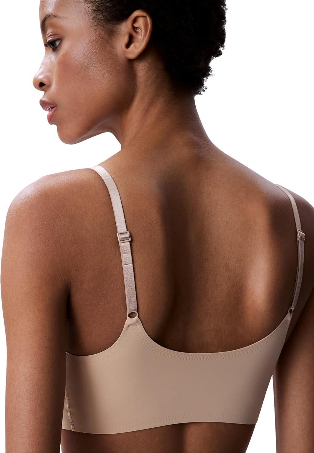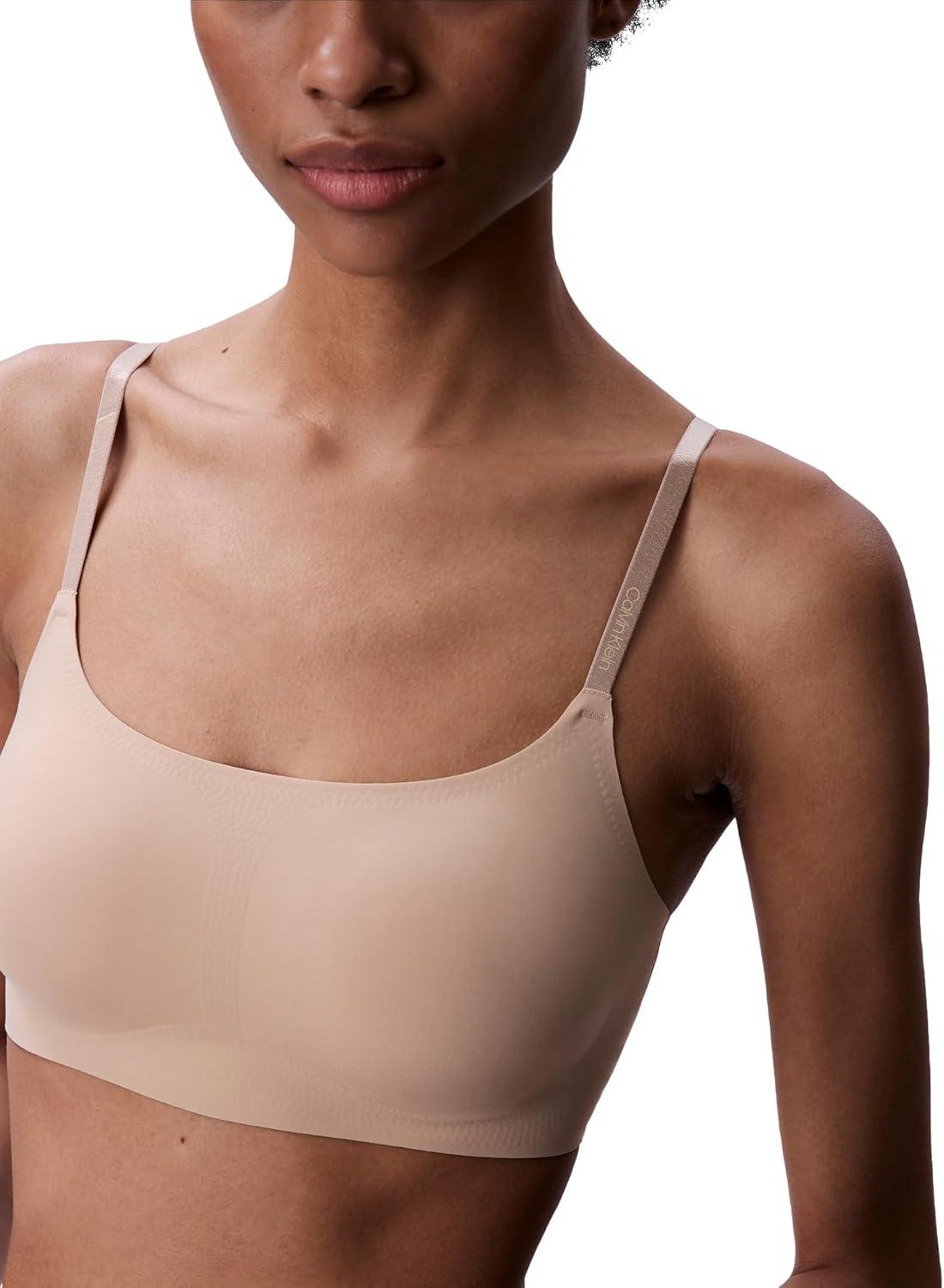 Calvin Klein Women’s Invisibles Comfort Seamless Adjustable Skinny Strap Bralette Bra(Beige)
