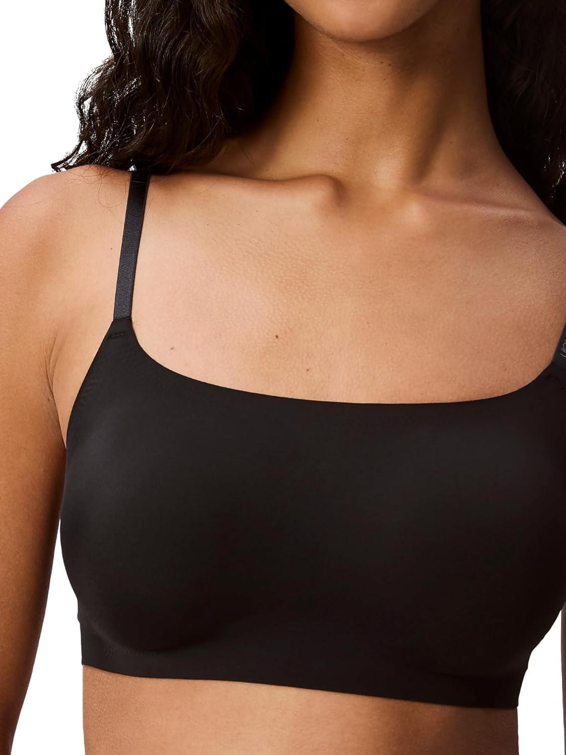 Calvin Klein Women’s Invisibles Comfort Seamless Adjustable Skinny Strap Bralette Bra(Black)