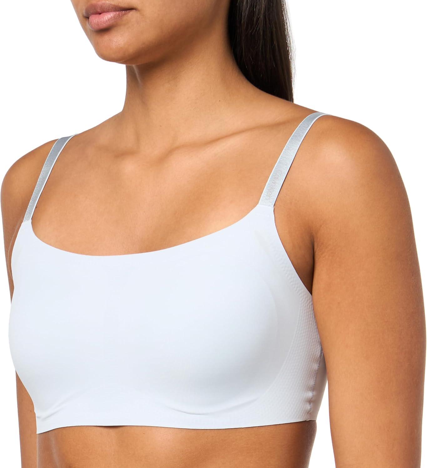 Calvin Klein Women’s Invisibles Comfort Seamless Adjustable Skinny Strap Bralette Bra(Plein Air W/ Ivory Logo)