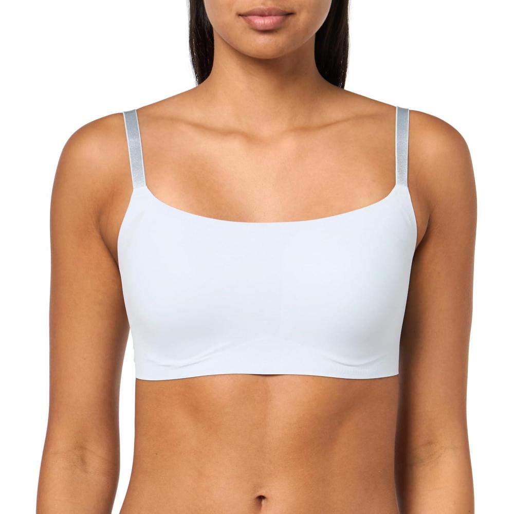 imageCalvin Klein Womens Invisibles Comfort Seamless Adjustable Skinny Strap Bralette BraPlein Air W Ivory Logo