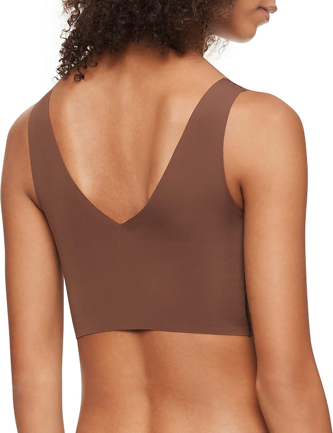 Calvin Klein Women's Invisibles Comfort Seamless Lightly Lined V Neck Bralette Bra(Chestnut)