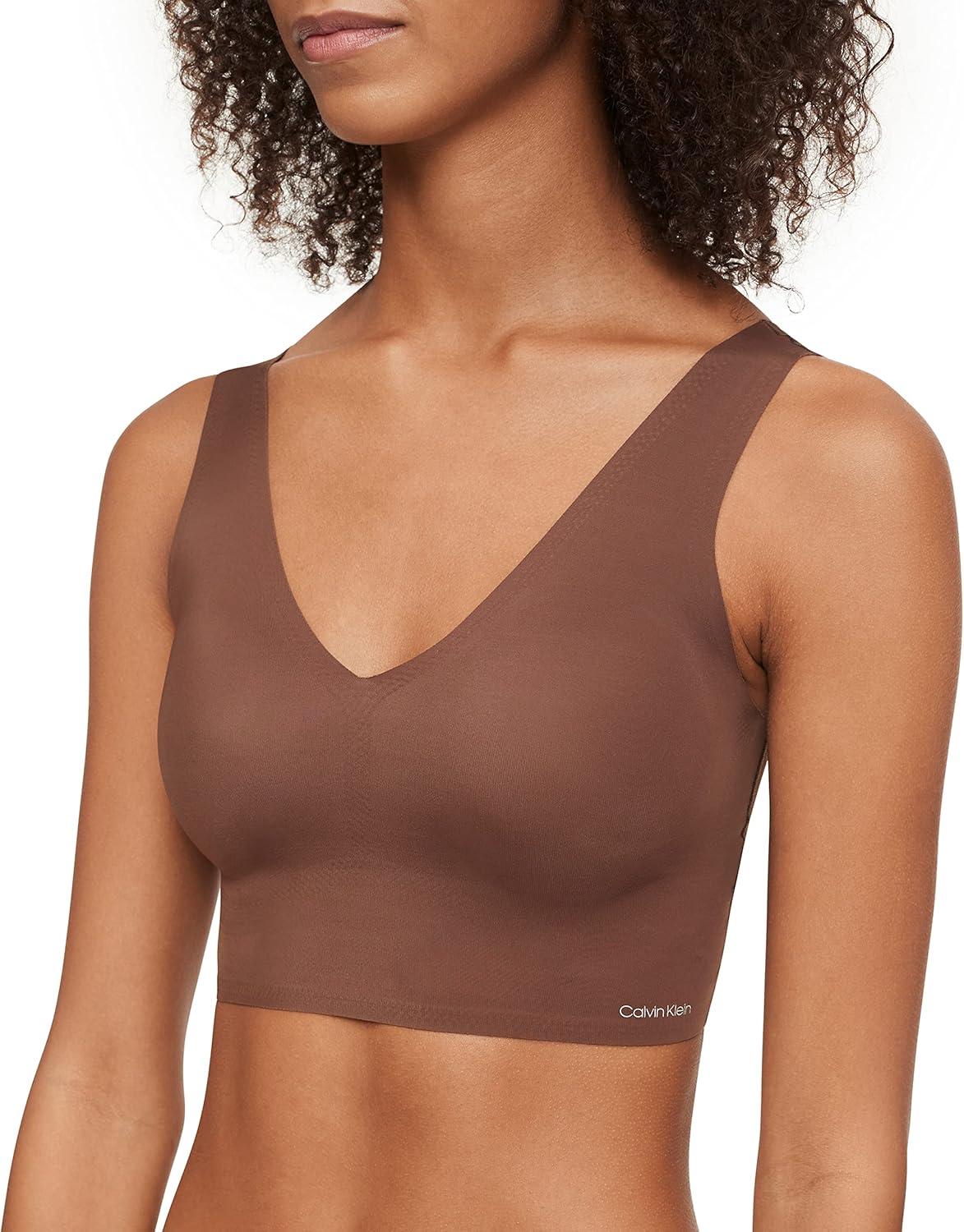 Calvin Klein Women’s Invisibles Comfort Seamless Lightly Lined V Neck Bralette Bra(Chestnut)