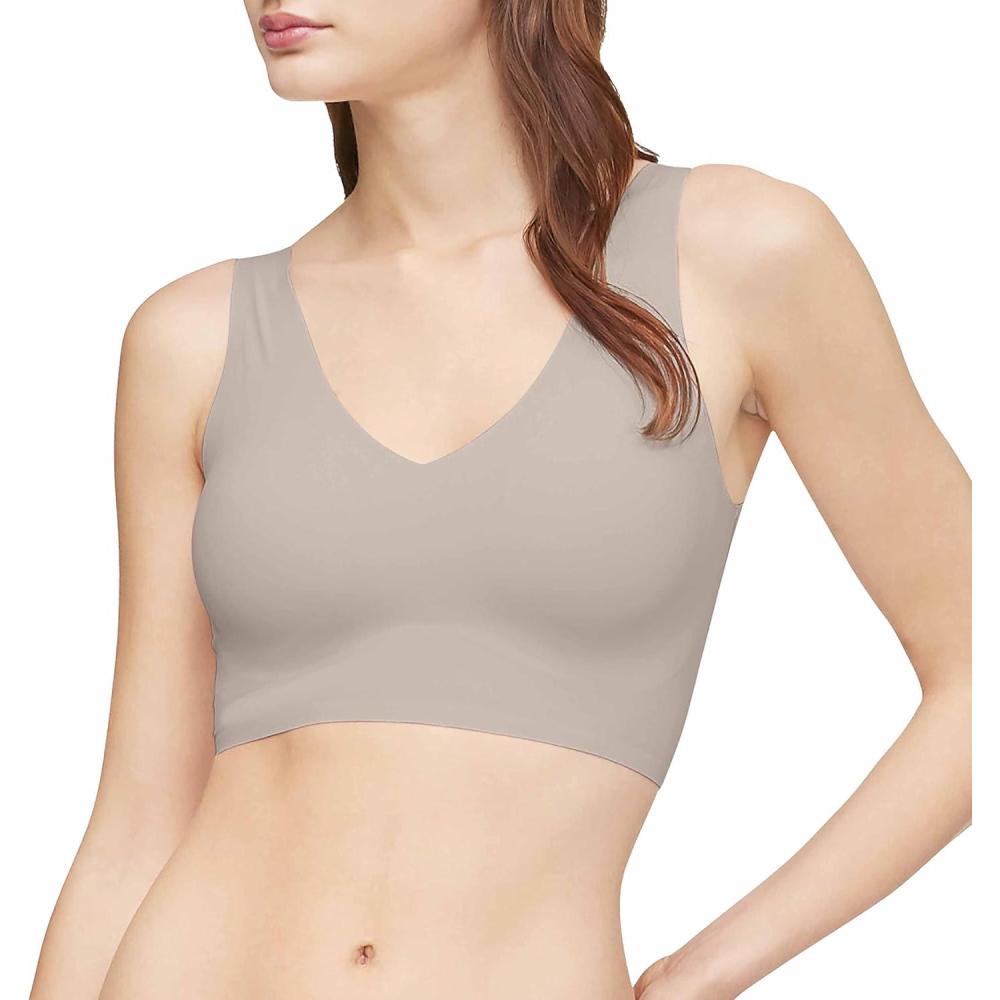 Calvin Klein Women’s Invisibles Comfort Seamless Lightly Lined V Neck Bralette Bra(Mink)