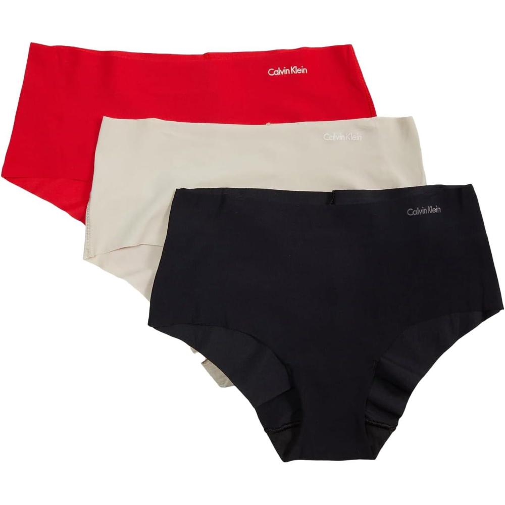 Calvin Klein Women’s Invisibles Hipster Multipack Panty(Rouge/Peyote/Black)