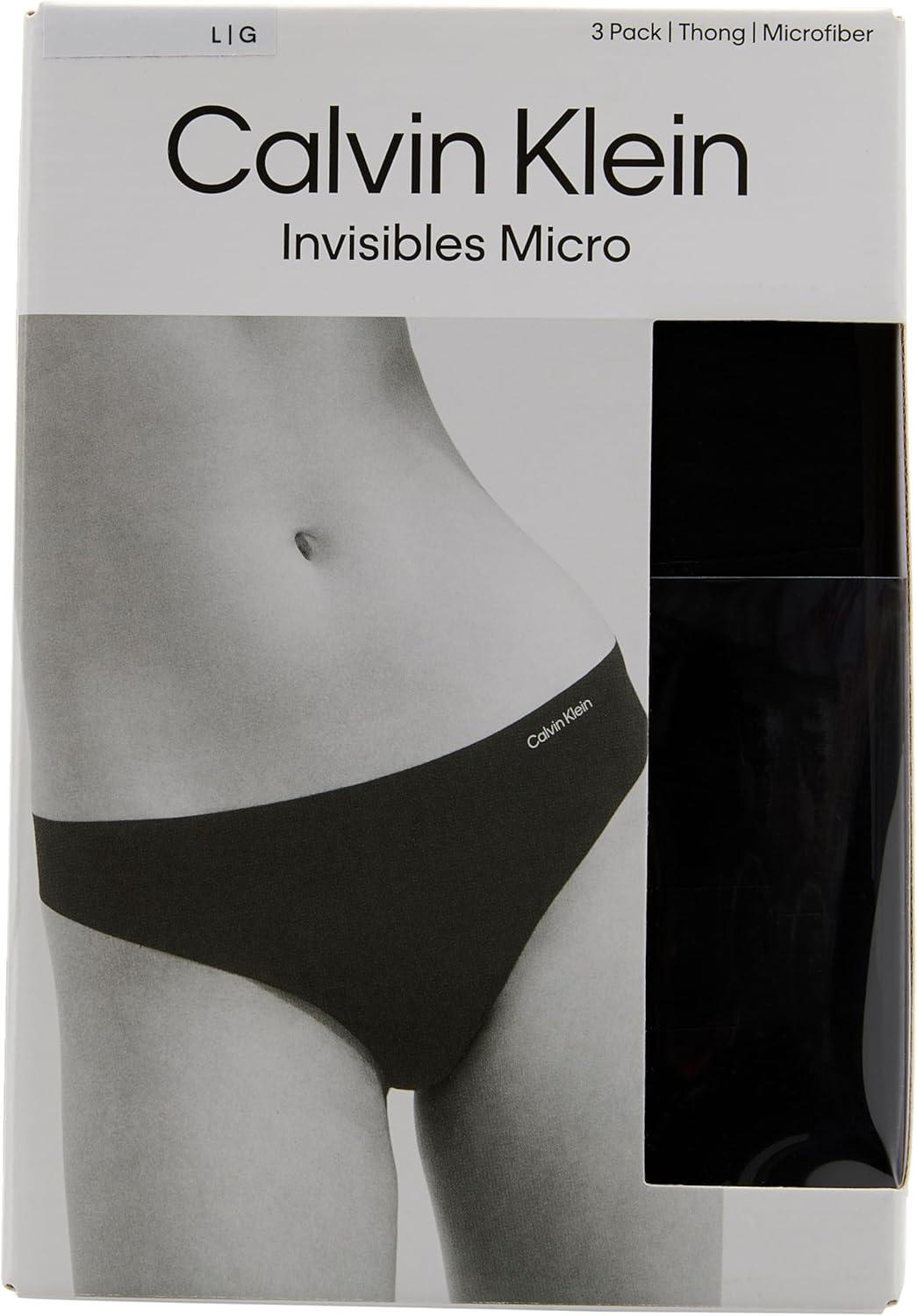 Calvin Klein Women’s Invisibles Seamless Thong Panties, 3 Pack(Black/Black/Black)