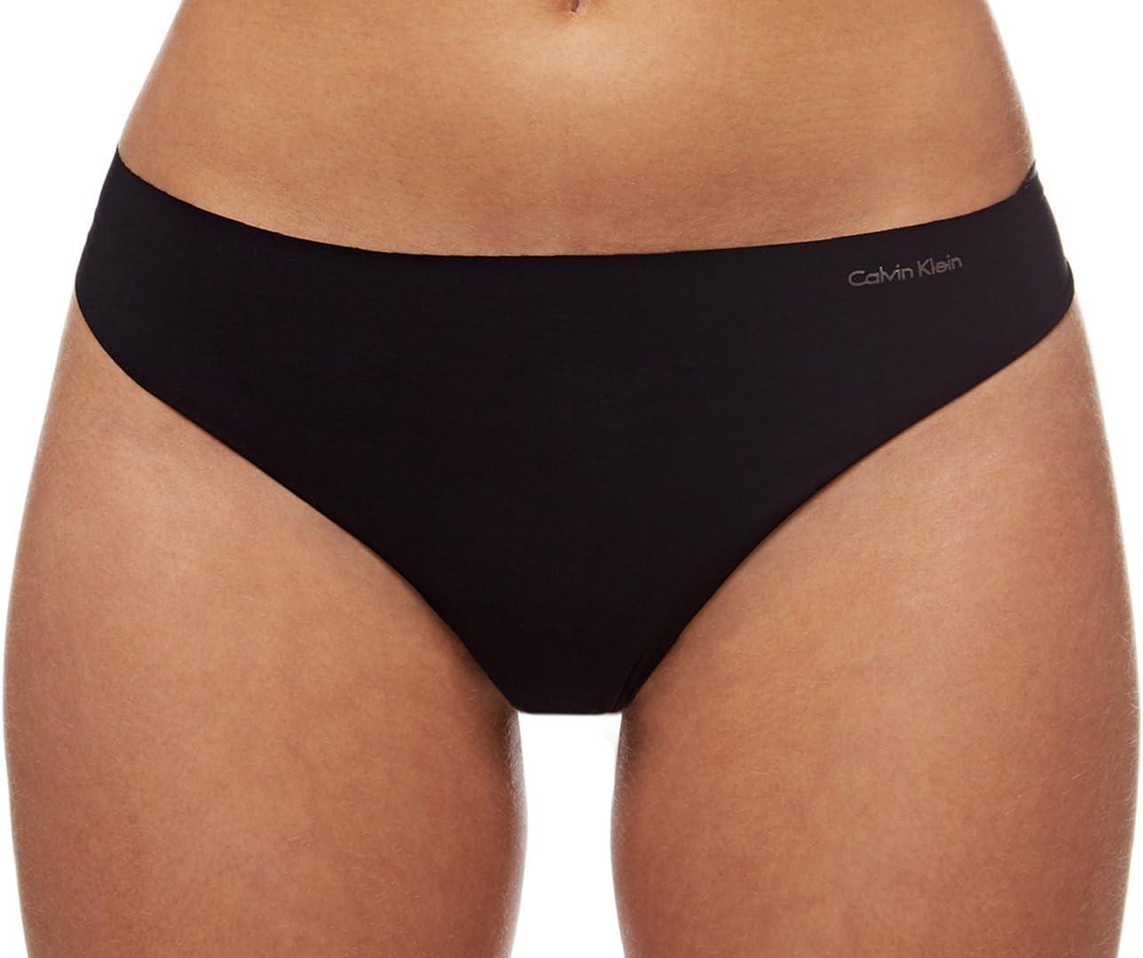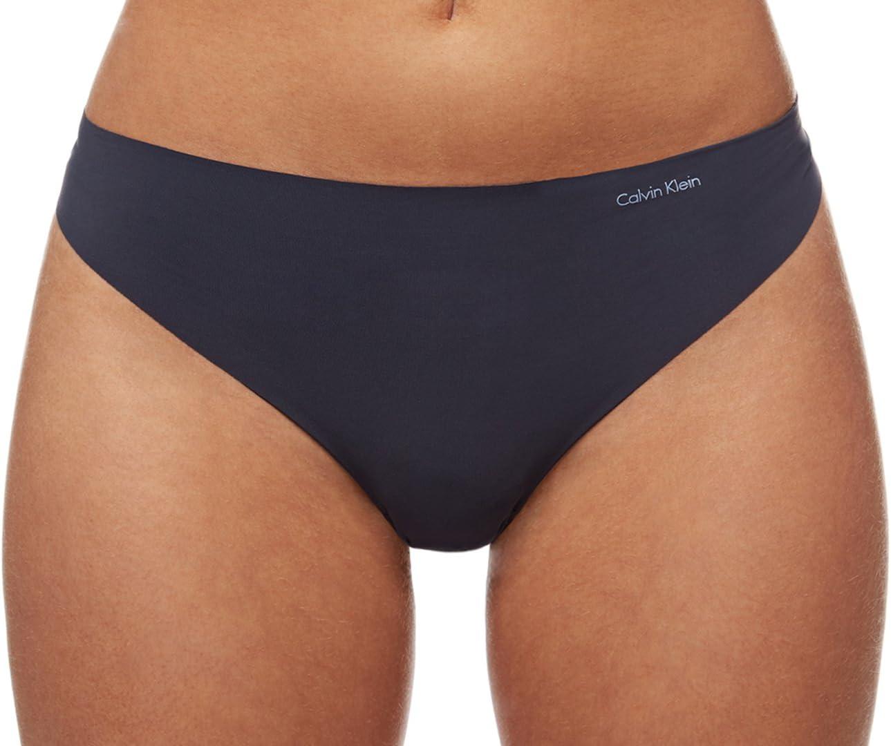 Calvin Klein Women’s Invisibles Seamless Thong Panties, 3 Pack(Black / Blue / Nude)
