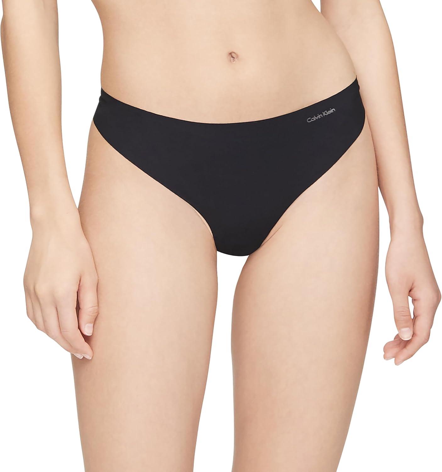 Calvin Klein Women’s Invisibles Seamless Thong Panties, 3 Pack(Satellite/Rain Dance/Black)