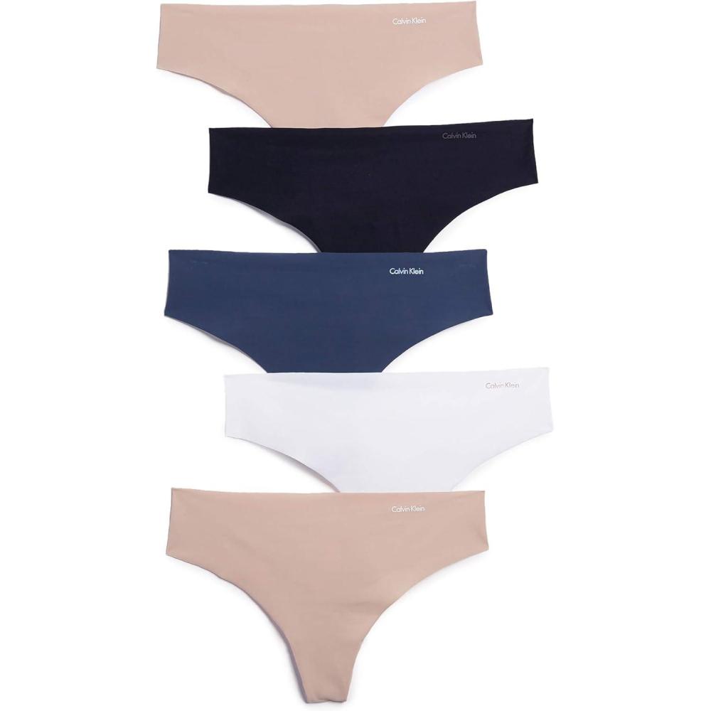 Calvin Klein Women’s Invisibles Seamless Thong Panties, 5 Pack(Black/Speakeasy/White Light Caramel)