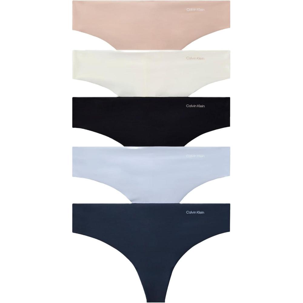 Calvin Klein Women’s Invisibles Seamless Thong Panties, 5 Pack(Casual Blue/Speakeasy/Cedar/Ivory/Black)