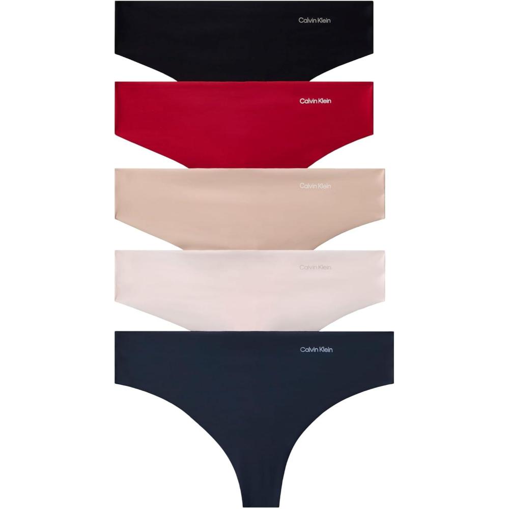 Calvin Klein Women’s Invisibles Seamless Thong Panties, 5 Pack(Red Stamp/Nymphs Thigh/Black/Cedar/Speakeasy)