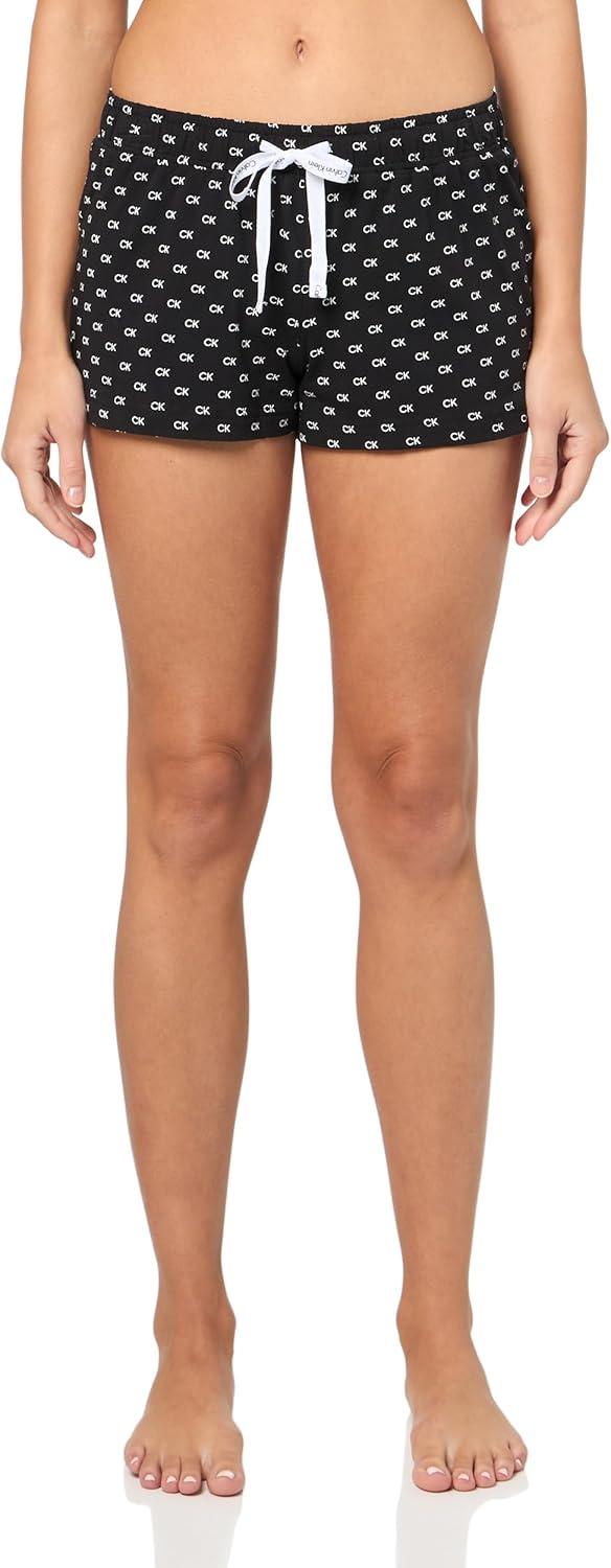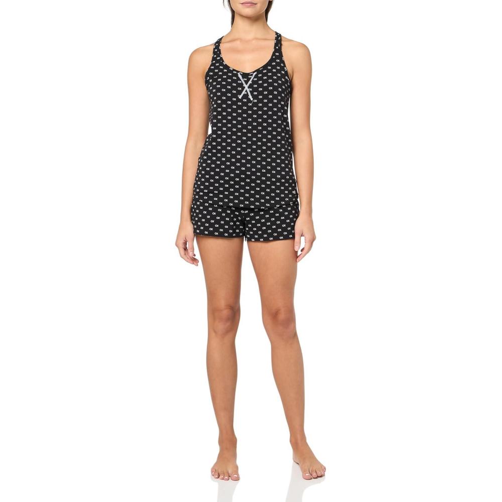 Calvin Klein womens Jersey Tank and Short Pajama Set(Black W. White Allover Ck Logo)