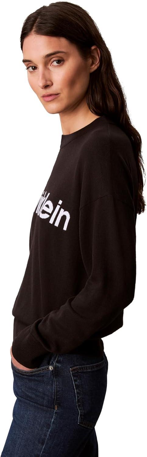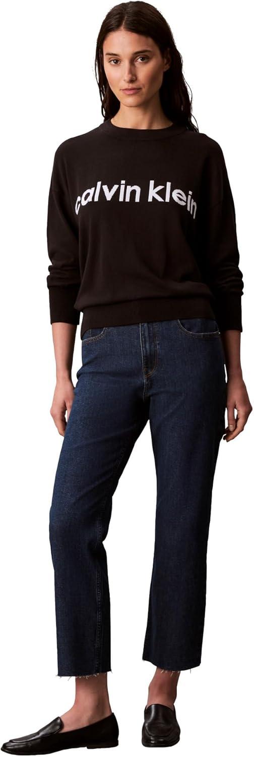 Calvin Klein Women’s Logo Mockneck Sweater(Black)