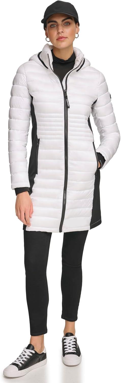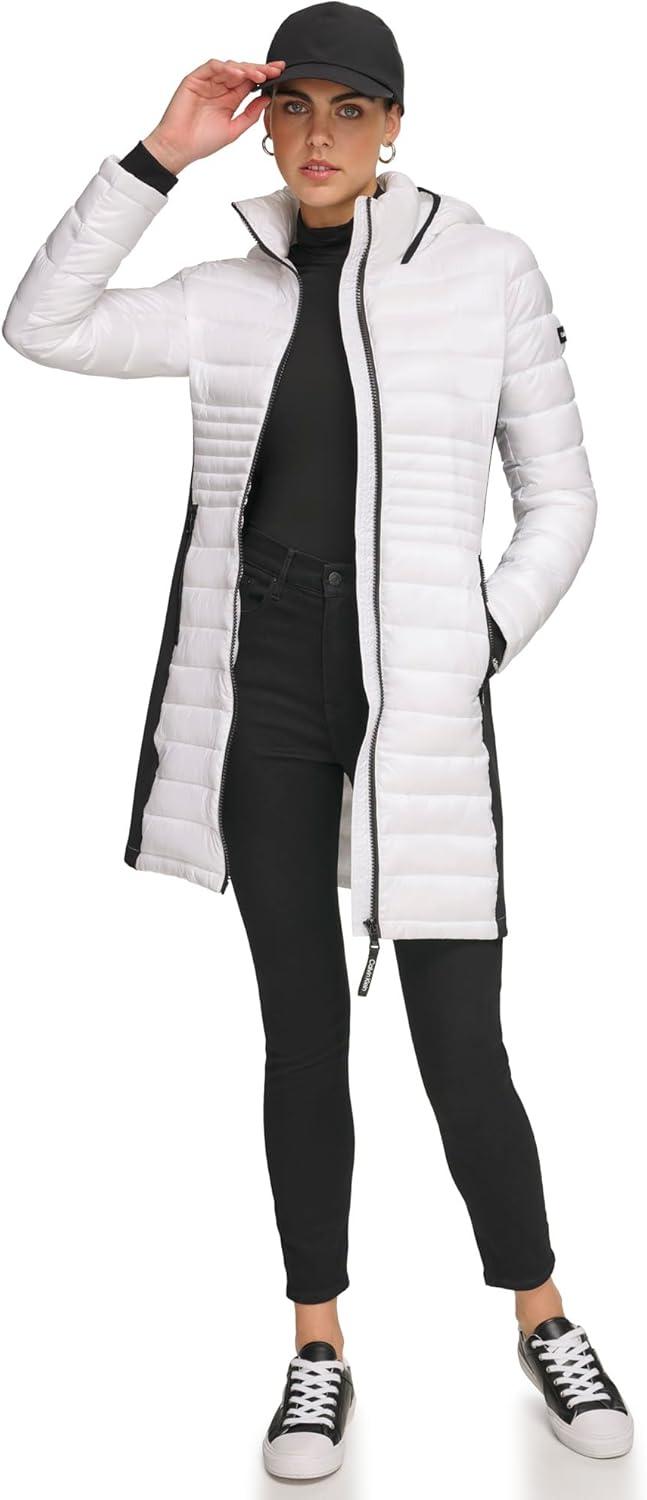 Calvin Klein Women's Long Light-Weight Puffer Jacket(Light-weight Shine White)