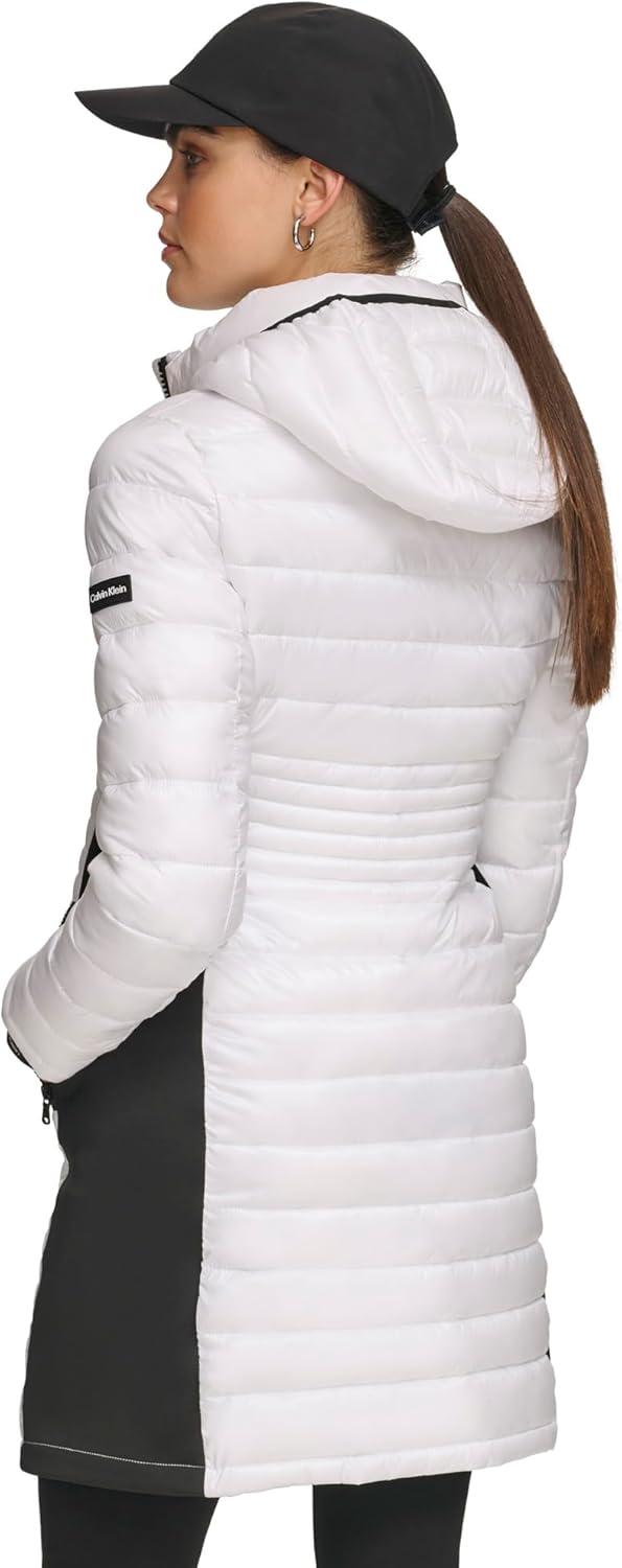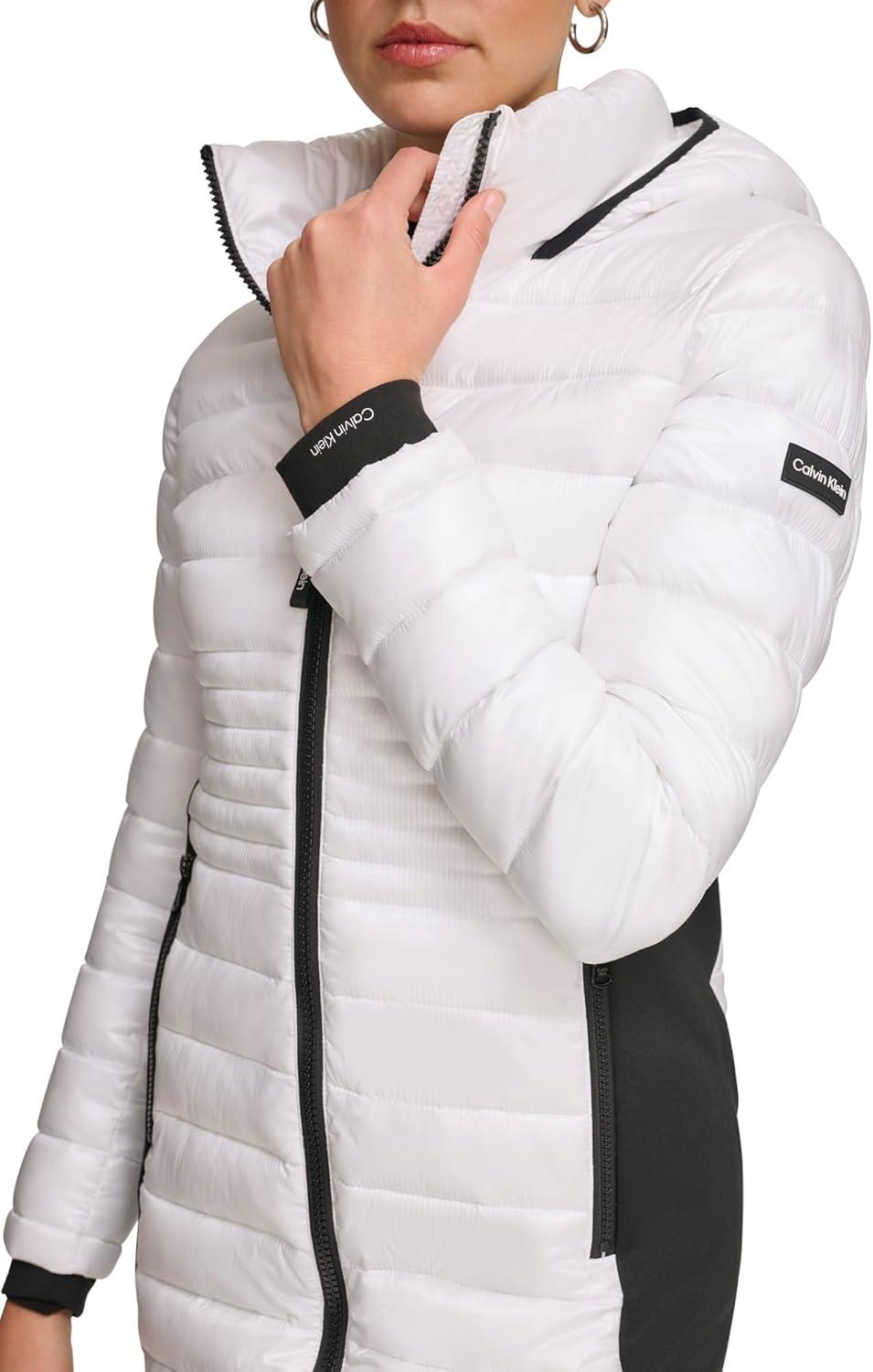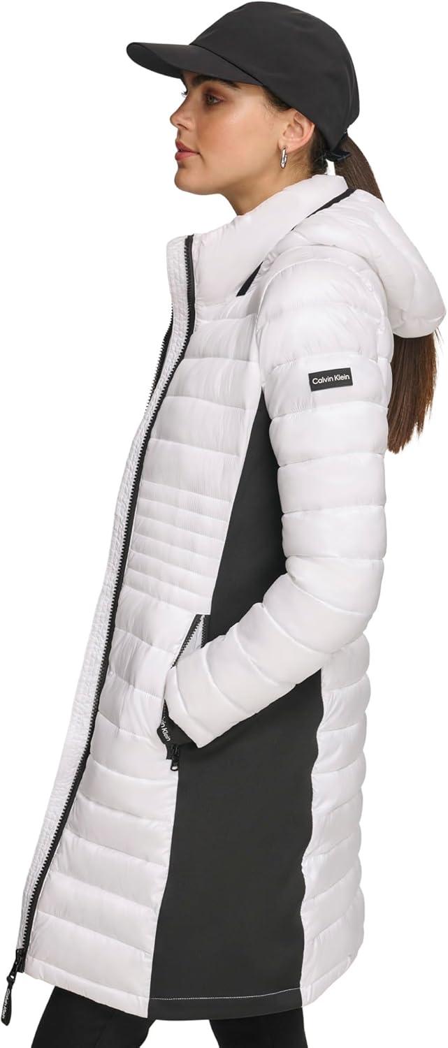 Calvin Klein Women’s Long Light-Weight Puffer Jacket(Light-weight Shine White)