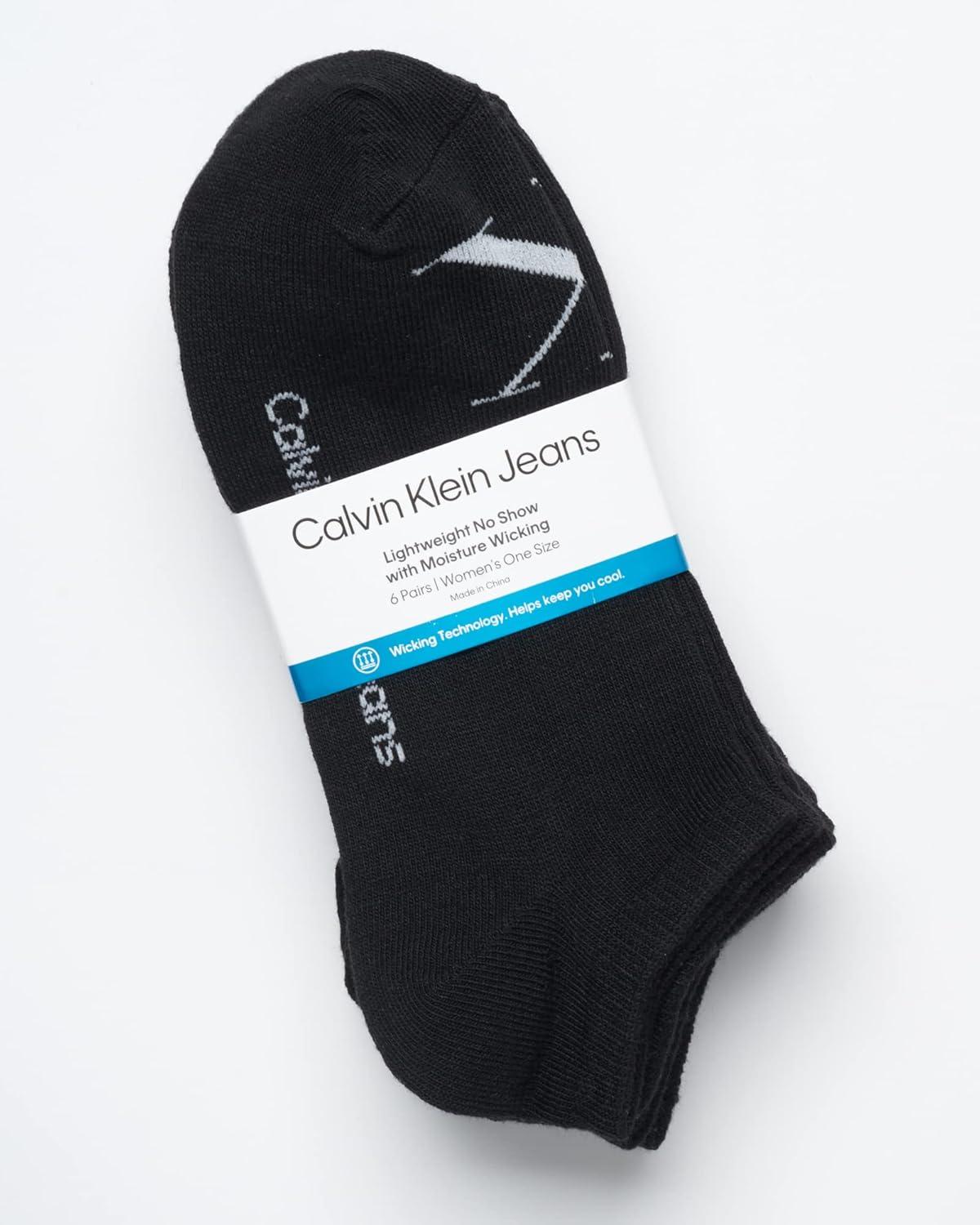 Calvin Klein Womens Low Cut Socks - 6 Pack Breathable Cushioned Athletic Performance No Show Socks for Women (Sizes: 4-10)(Black Monogram)