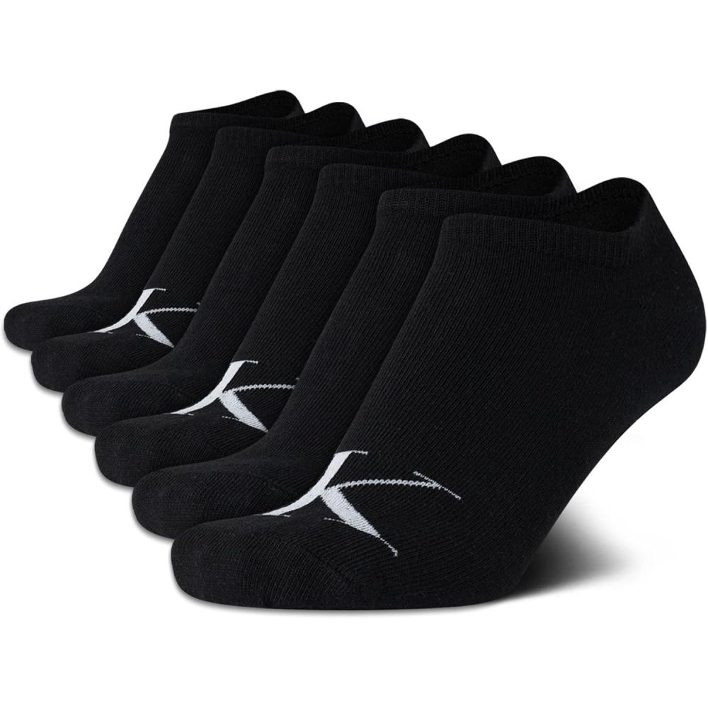 Calvin Klein Womens Low Cut Socks – 6 Pack Breathable Cushioned Athletic Performance No Show Socks for Women (Sizes: 4-10)(Black Logo)
