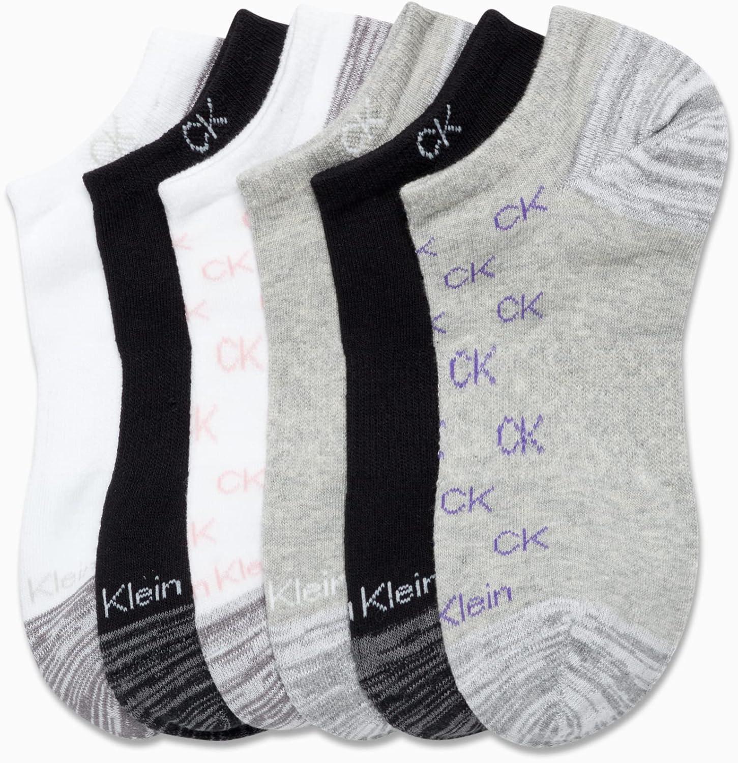 Calvin Klein Womens Low Cut Socks – 6 Pack Breathable Cushioned Athletic Performance No Show Socks for Women (Sizes: 4-10)(Black/White/Grey)