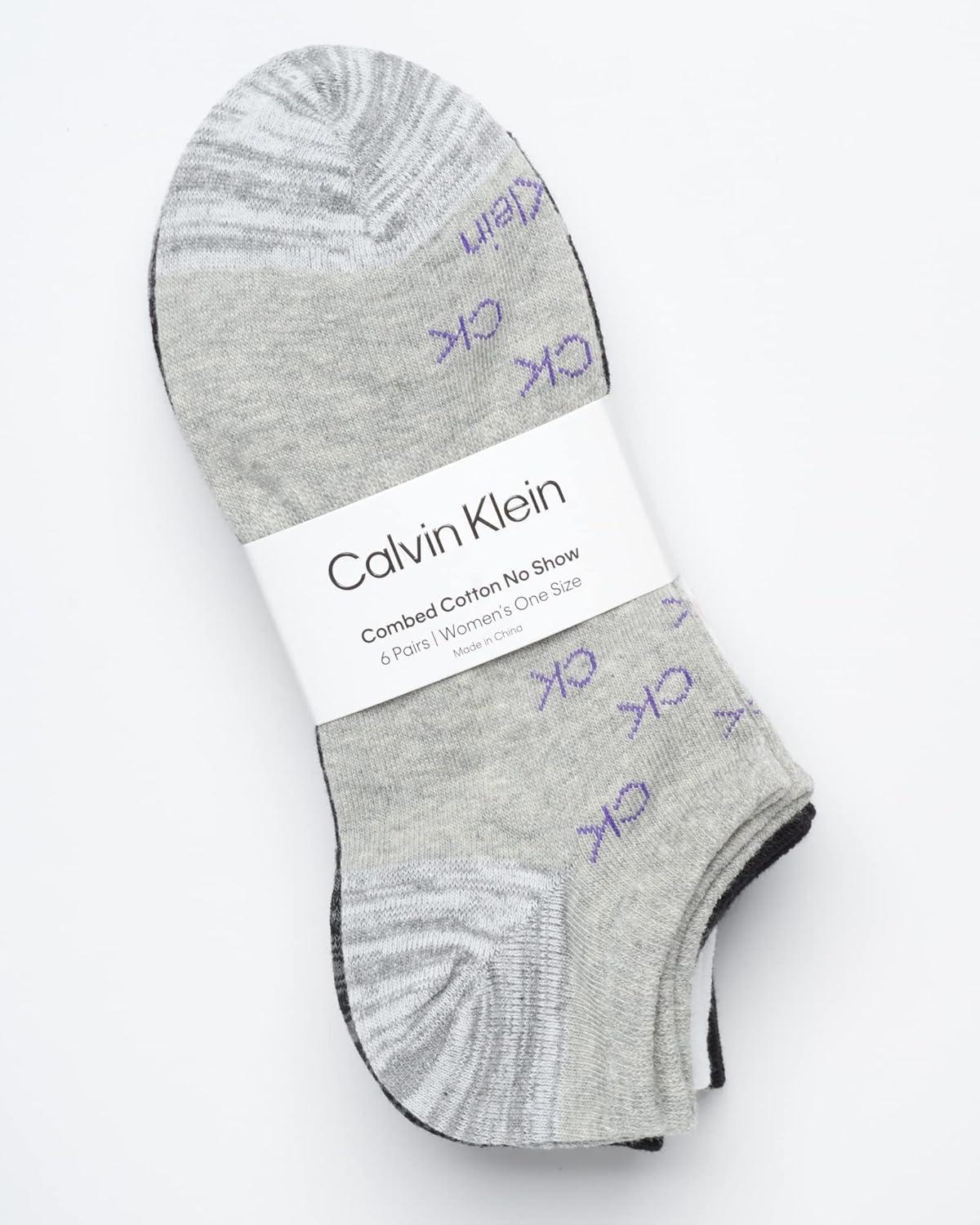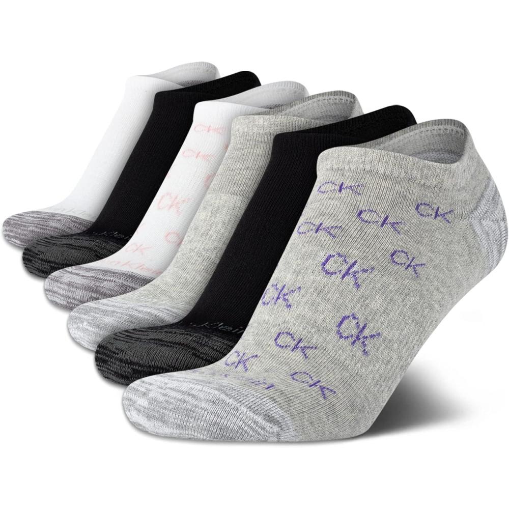 Calvin Klein Womens Low Cut Socks - 6 Pack Breathable Cushioned Athletic Performance No Show Socks for Women (Sizes: 4-10)(Grey Ck Logo)