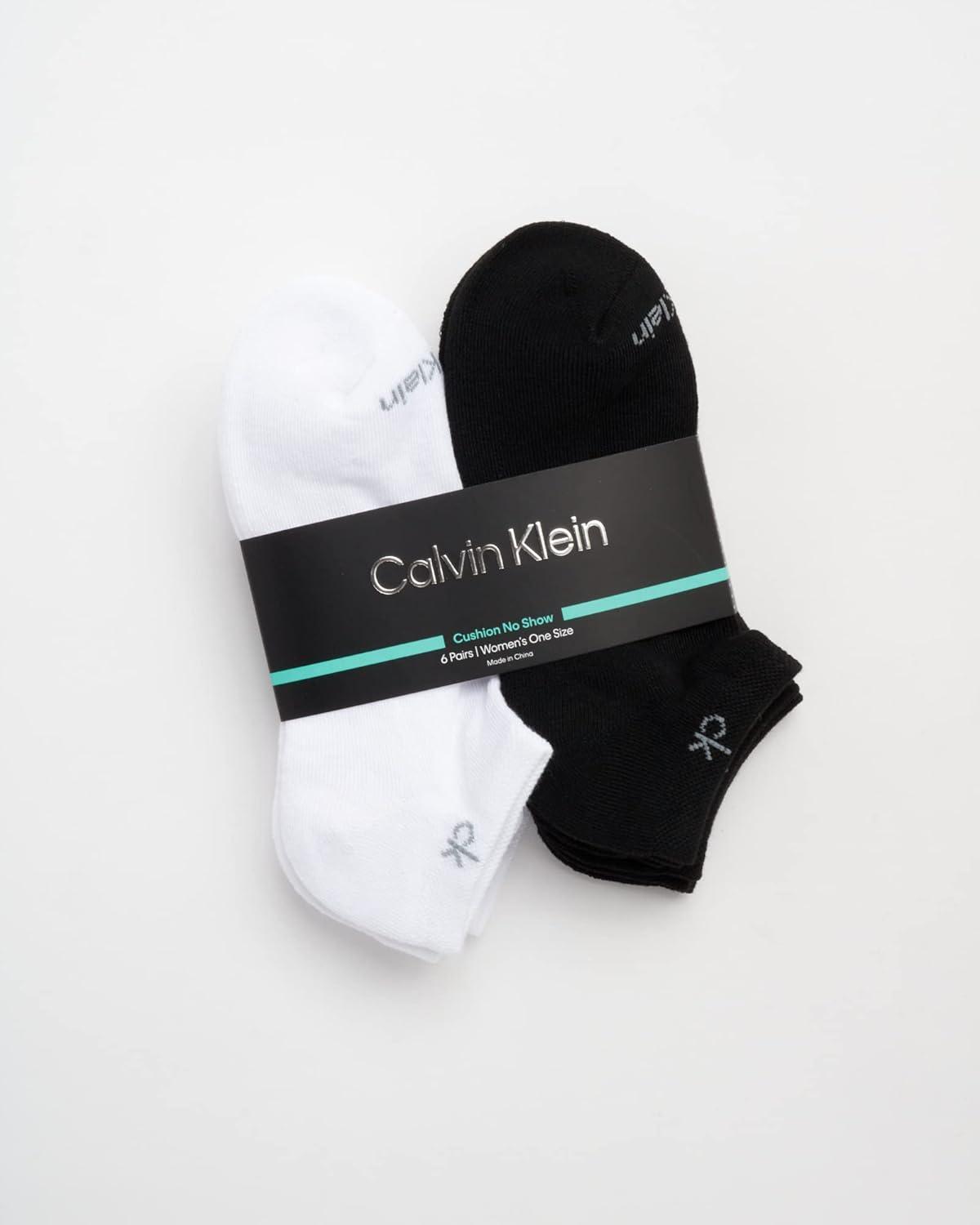 Calvin Klein Womens Low Cut Socks - 6 Pack Breathable Cushioned Athletic Performance No Show Socks for Women (Sizes: 4-10)(White/Black)