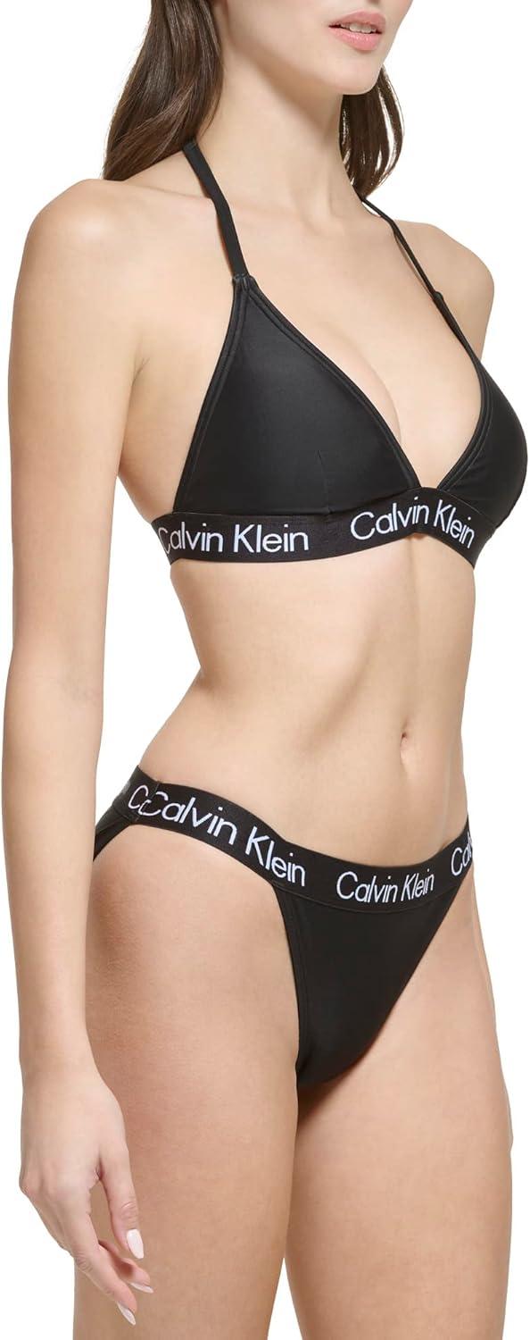 Calvin Klein Women's Low Waisted Elastic Logo Triangle Bikini Set(Black Logo)
