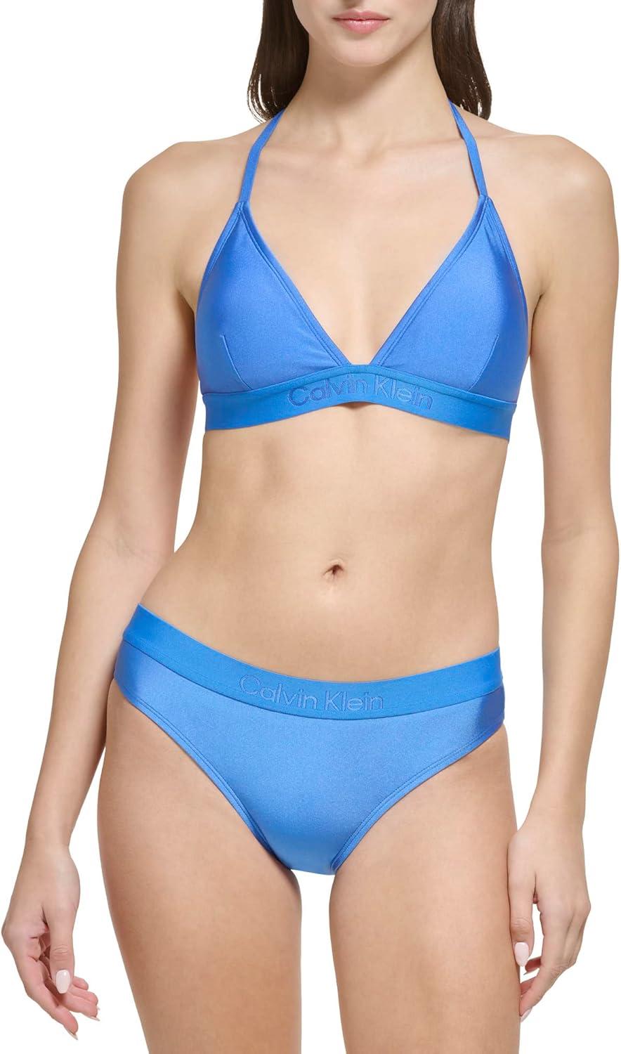 Calvin Klein Women's Low Waisted Elastic Logo Triangle Bikini Set(Palace Blue Shimmer)