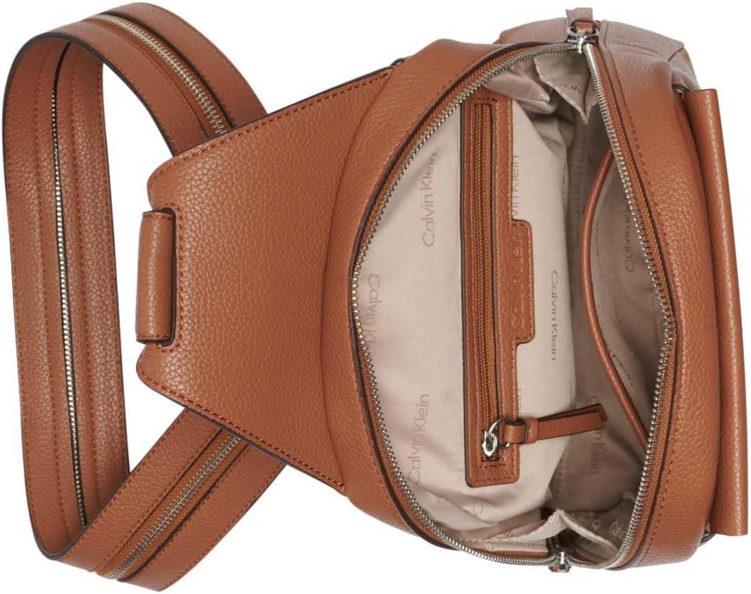 Calvin Klein Women's Millie Backpack for Women – Vegan Leather Monogram Backpack, 2 Pockets, Brown/Khaki/Black, One Size(Caramel)