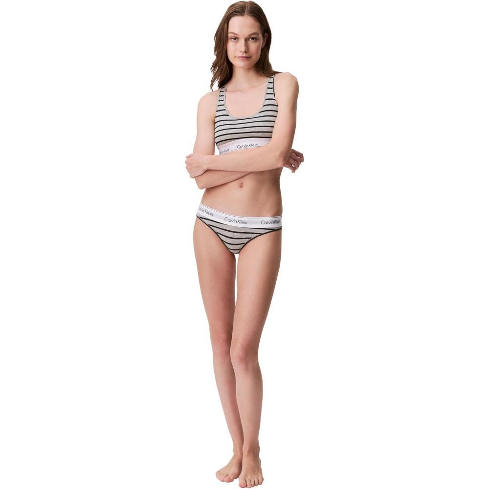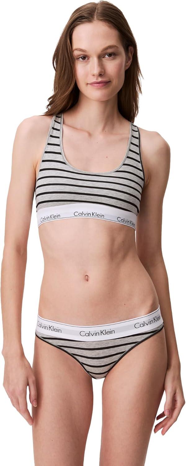 Calvin Klein Women’s Modern Cotton Stretch Bikini Panty(Leader Stripe+grey Heather)