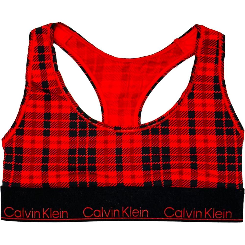 Calvin Klein Women’s Modern Cotton Unlined Wireless Bralette(Scotch Plaid Rouge)