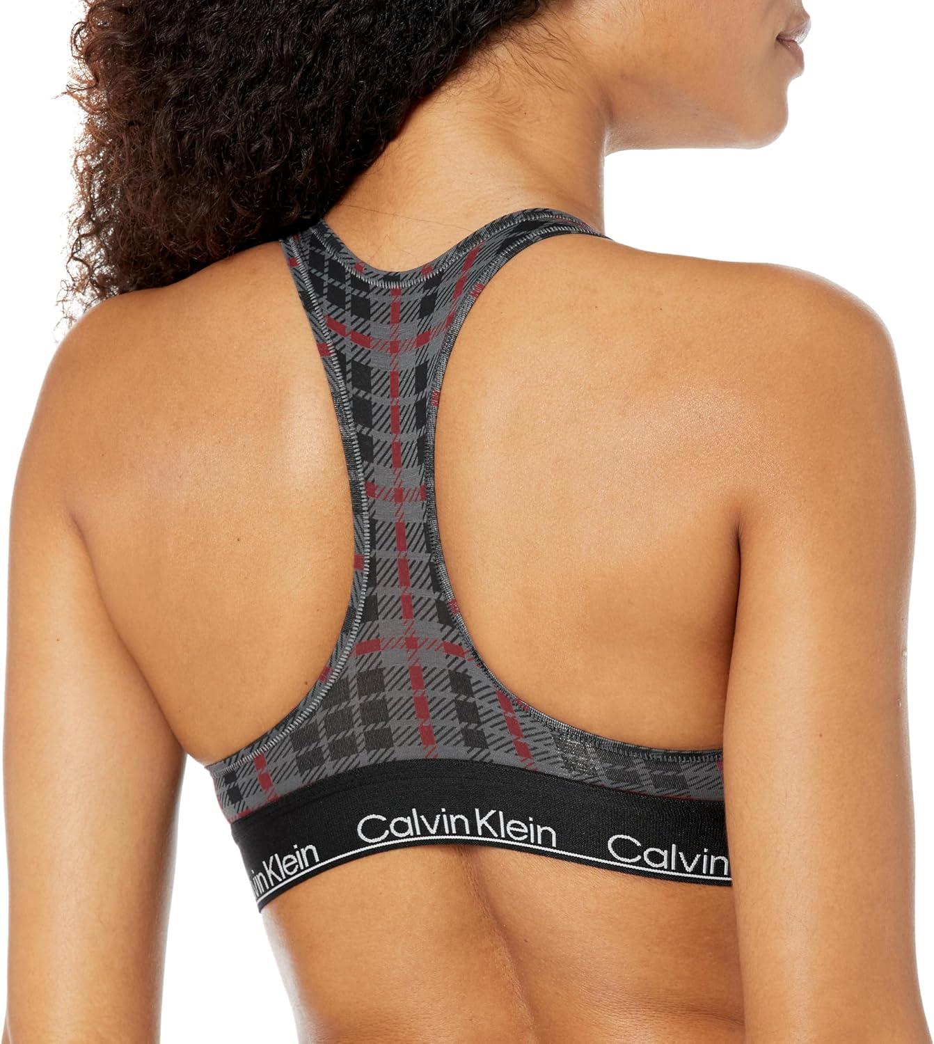 Calvin Klein Women’s Modern Cotton Unlined Wireless Bralette(Scotish Plaid+charcoal/Sundried Tomato)