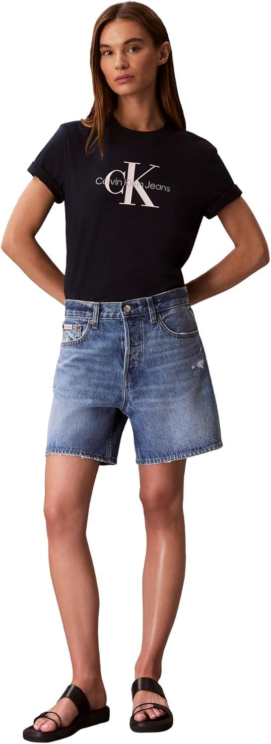 Calvin Klein Women’s Monogram Logo Crewneck T-Shirt(Dark Sapphire)