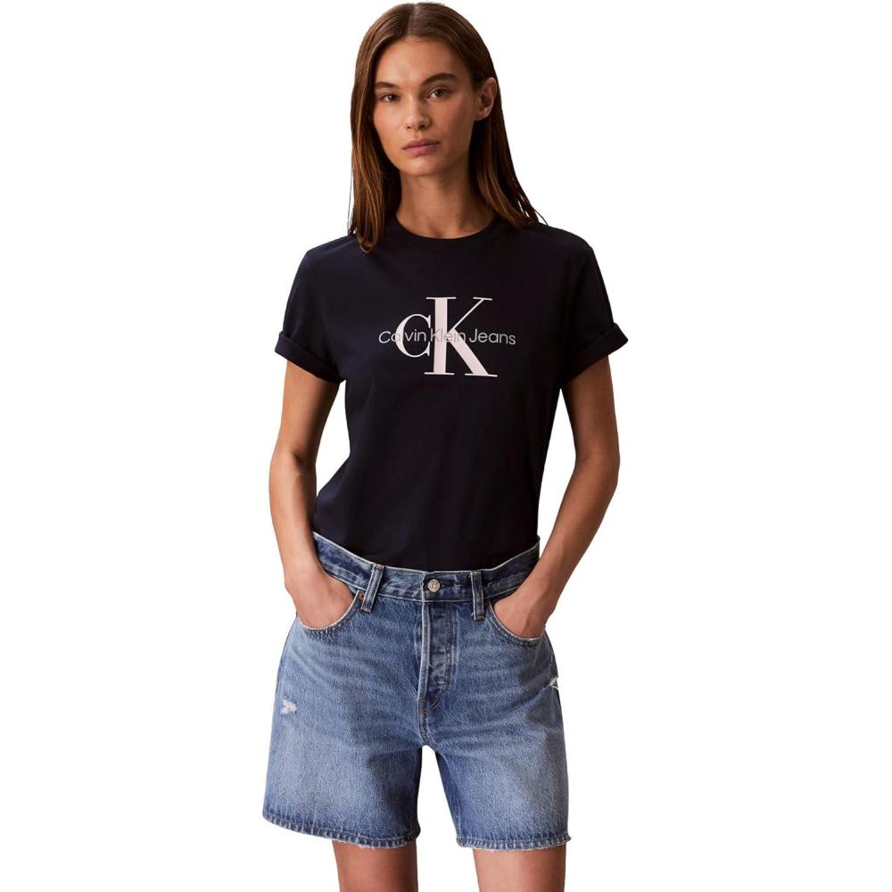 Calvin Klein Women's Monogram Logo Crewneck T-Shirt(Dark Sapphire)